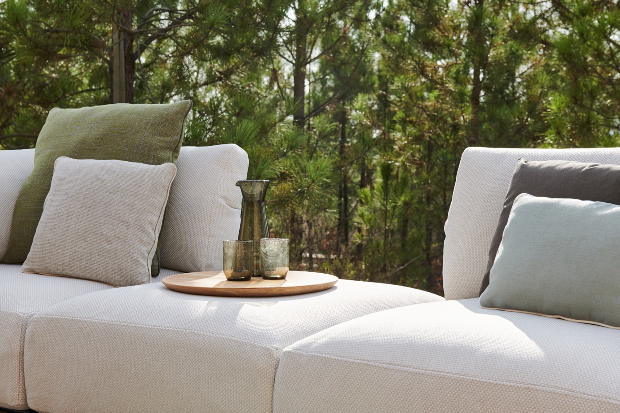The Nodi meridienne has a bold personality, but is a subtle presence in an outdoor room setting. Nodi's trademark twisted, weather-resistant Canax? weaving is stretched over a solid frame to cradle deep cushions. These are filled with extra-soft weather-resistant outdoor filling for complete comfort. The marine-grade stainless steel frame gives solidity, but appears light off the ground.