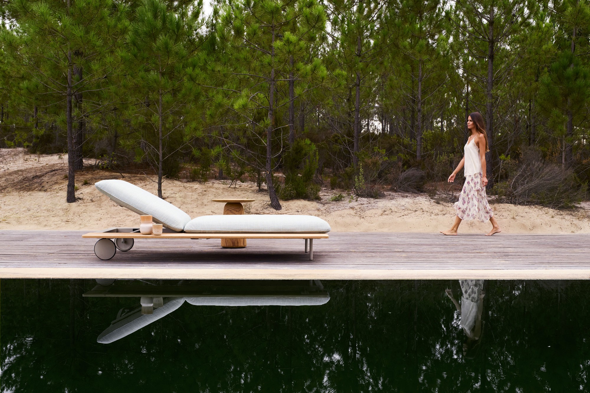 Ultimate comfort is the essence of the Senja lounger. The voluminous cushions ease away any stress and an optional full-length teak side table keeps everything close to hand.The extra-soft, weather-proof cushion filling and smooth Batyline covers, combined with a powdercoated aluminium or teak frame, make the Senja lounger as durable as it is indulgently relaxing.