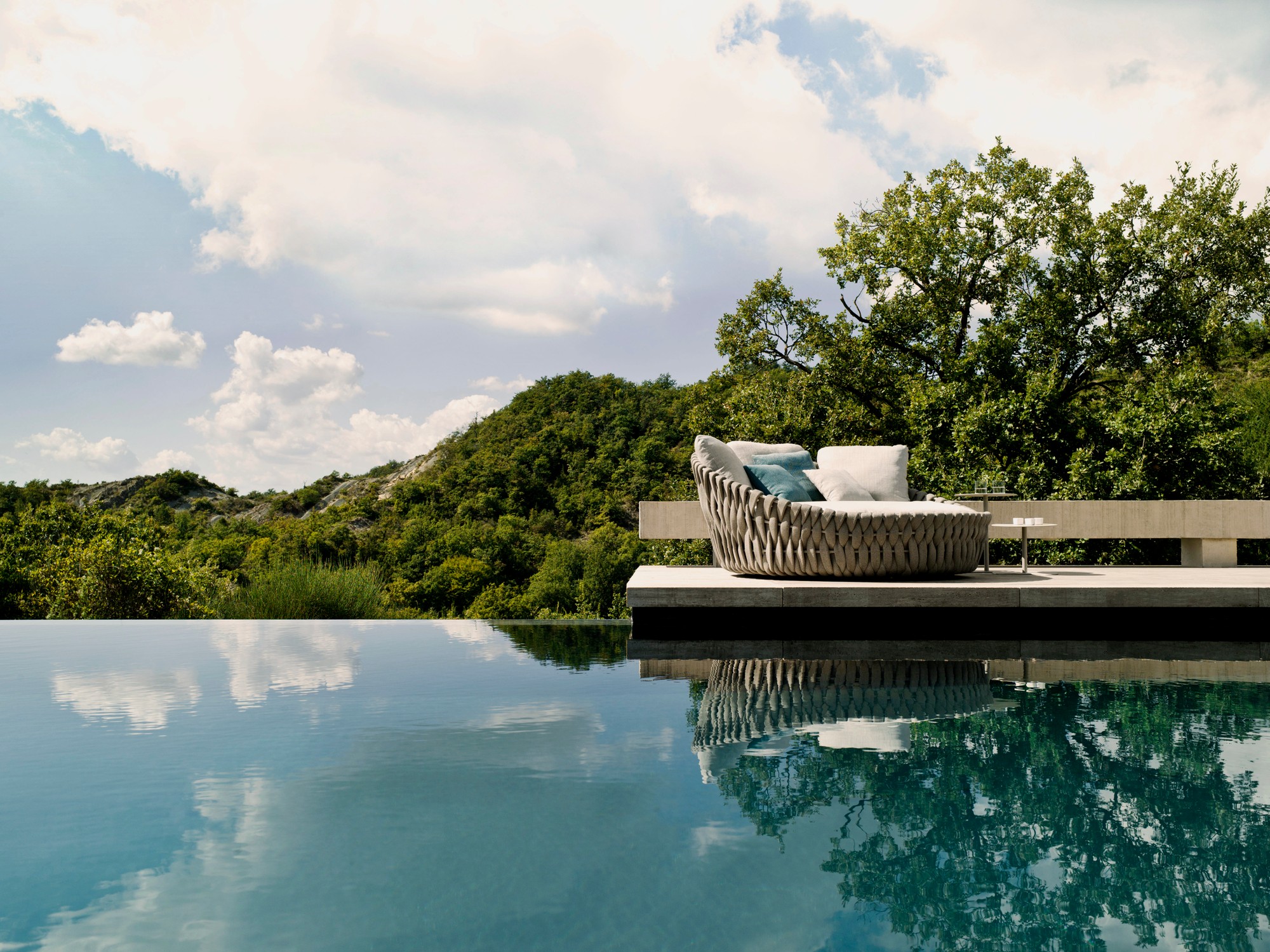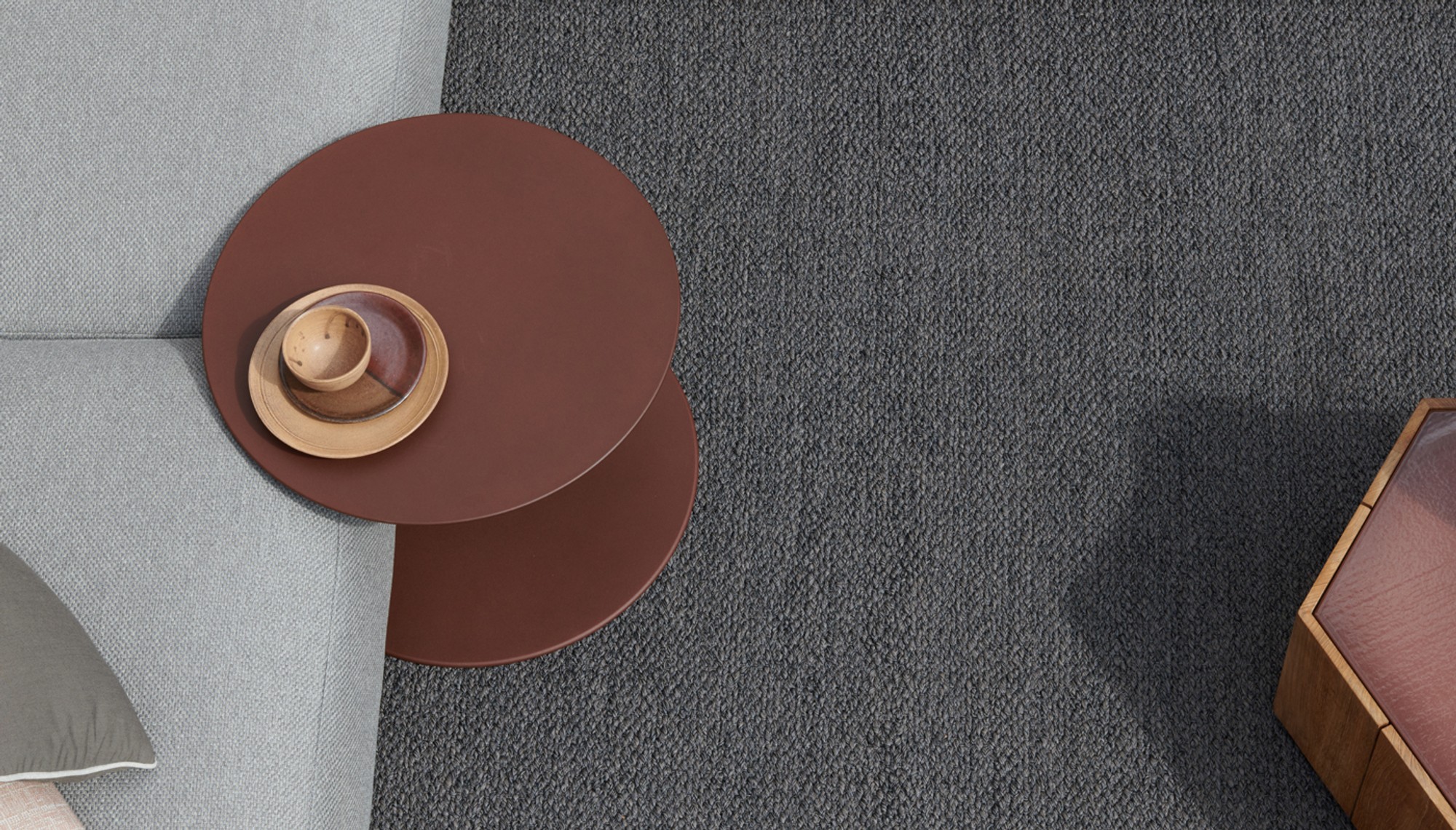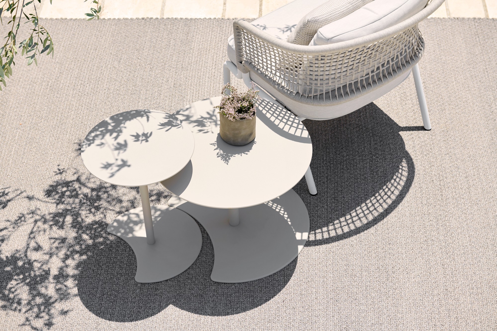 Drops side tables are inspired by the concentric circles formed by falling raindrops. They come in a selection of three different heights and two diameters, 40cm and 60cm. The bases have a crescent shape cut out of them, which makes grouping these versatile tables a visual game. Drops side tables, designed by Verónica Martínez, are are easy to move and cluster together. Made of powdercoated aluminium, they are available in white, aluminium, wengé and burgundy.