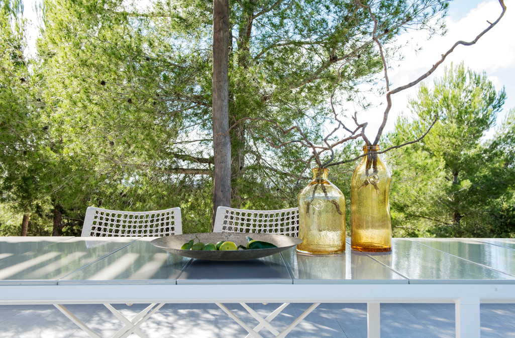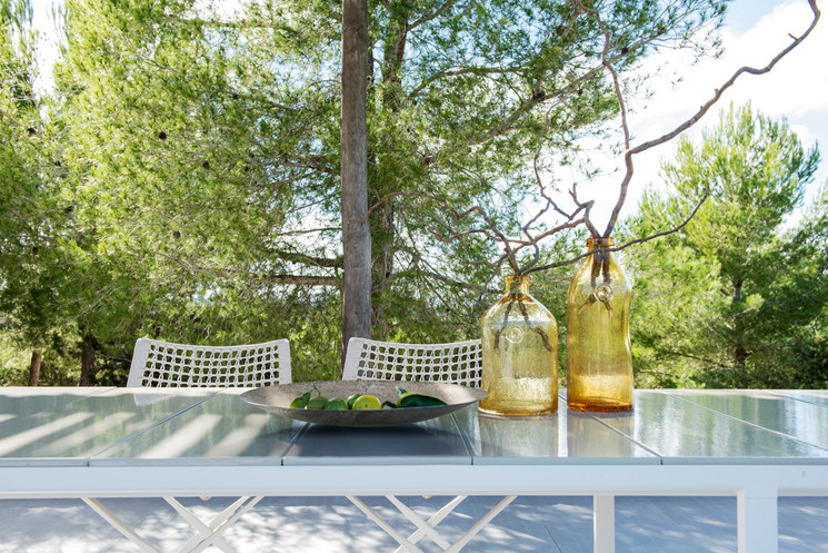The generous Nox table is nothing short of a masterpiece, featuring a sophisticated table top of glazed lava stone. The glazed slats, made of 400-year old lava stone from the Vesuvius, mirror the sky and are reminiscent of rippling water. The coloured glazing is added by hand. Baking at a high temperature creates a subtle craquelure finish, giving each table a unique look and making the stone heat, water, UV and stain-resistant, not to mention easy to maintain. The Nox tabletop rests on a slender yet strong frame made of powdercoated stainless steel, giving the table a surprisingly light and elegant look.
