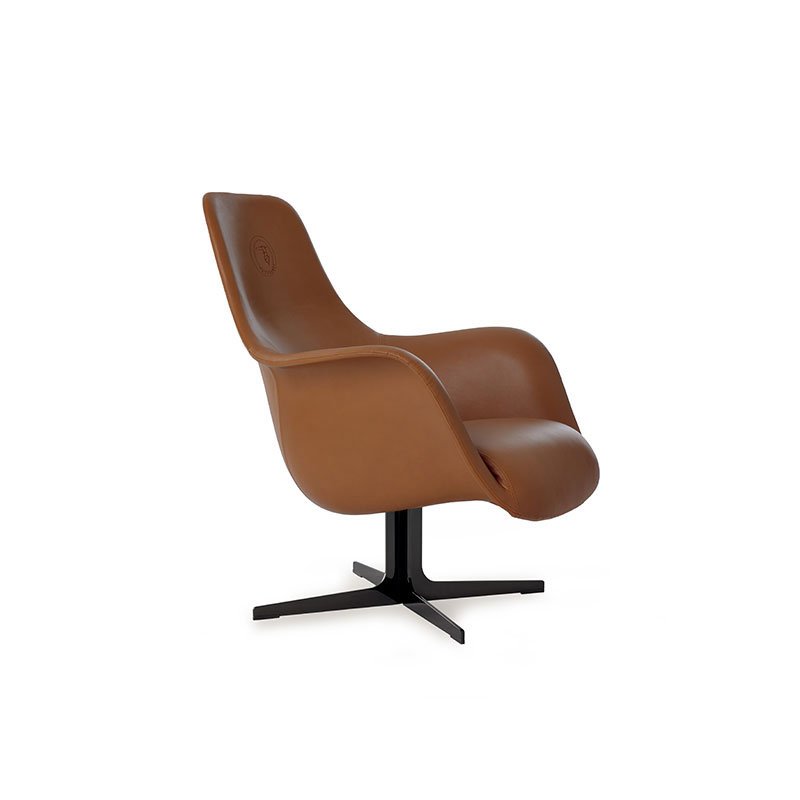 Eclectic and ironic, CipCip armchair proposes an iconic curved silhouette covered in fabric or leather with Oval Logo embroidery on the back. Steel base with gun-metal grey or Silk varnish bronze colour finishing.