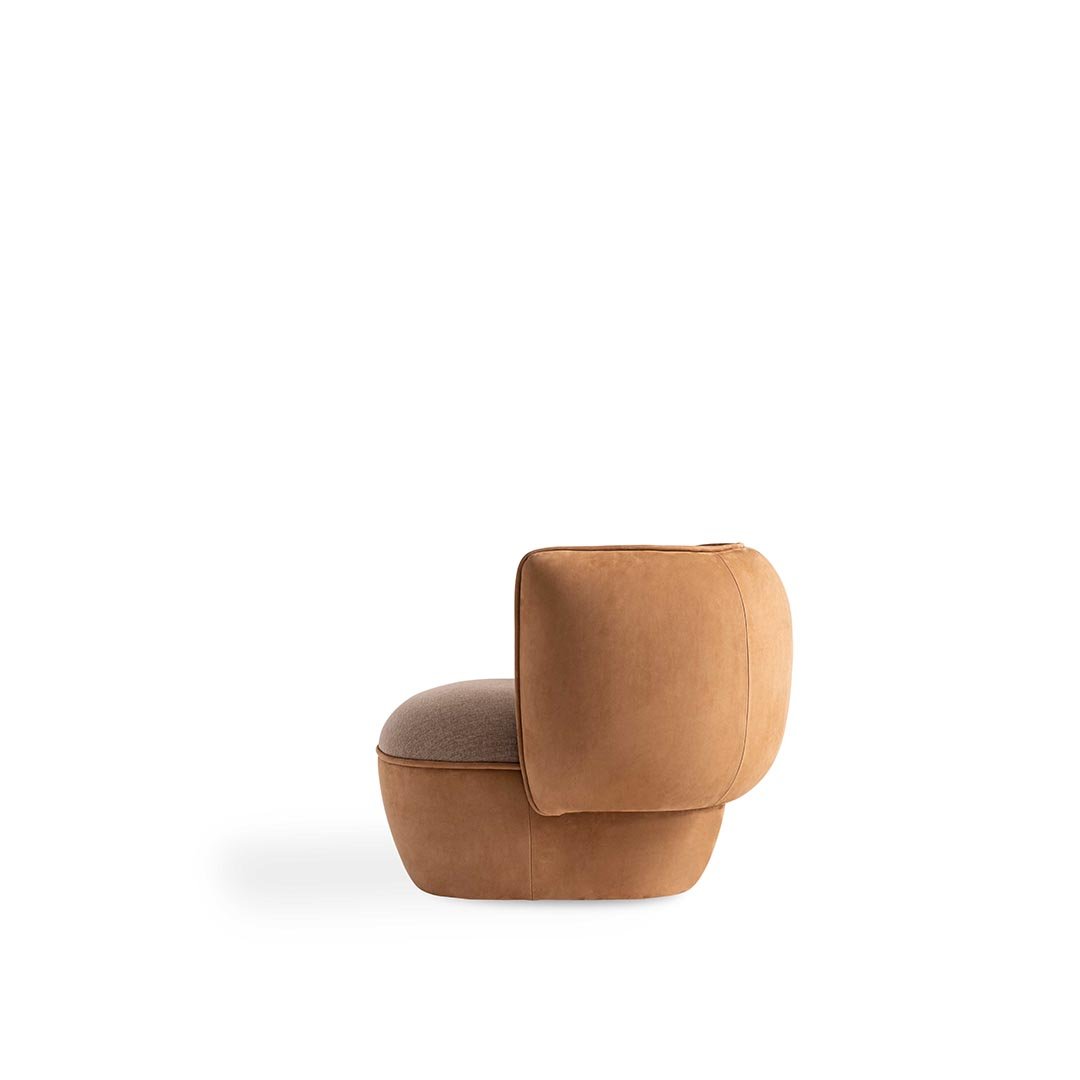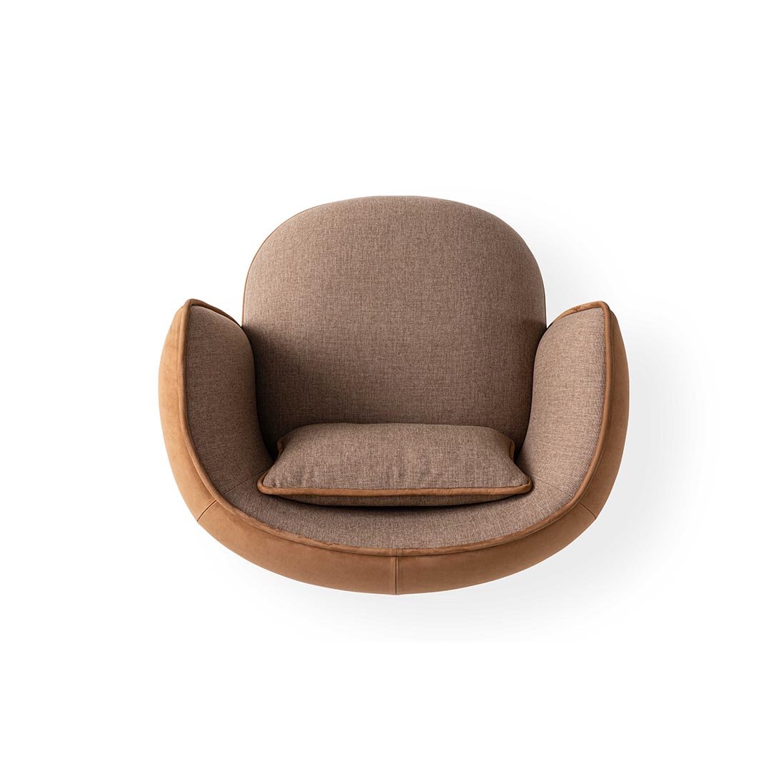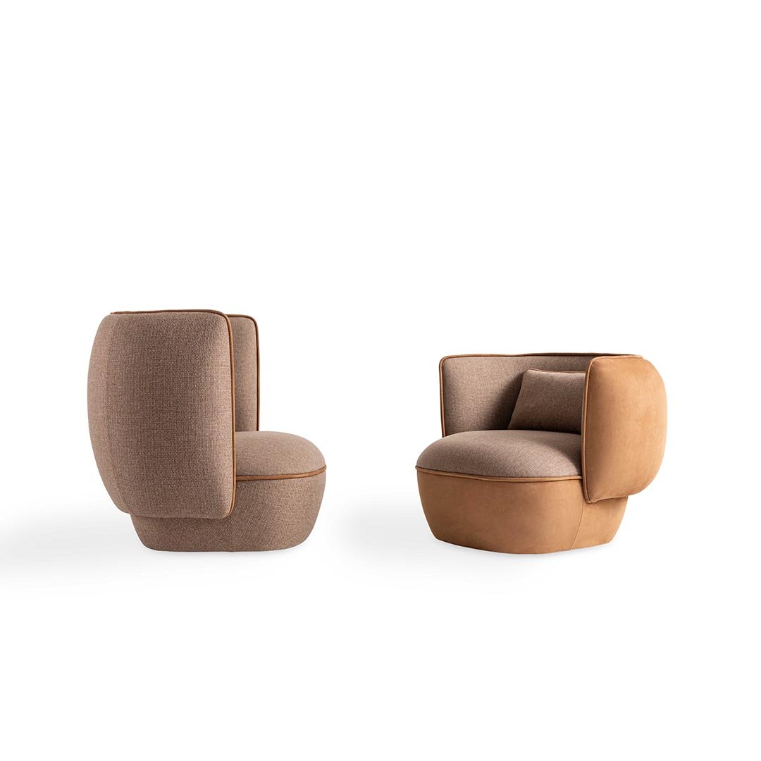 The Nebula armchairs fuse comfort and luxury, and are shaped like two small-scale architectural pieces, based on a “l(fā)ess is more” approach. The adjustable backrest of the Nebula armchair provides two contrasting yet matching solutions, respectively a convex and a concave version: the first serves a social purpose, while the second embraces cosiness and intimacy. This emotional undertone recalls the fluffiness of a cloud, as the name suggests.