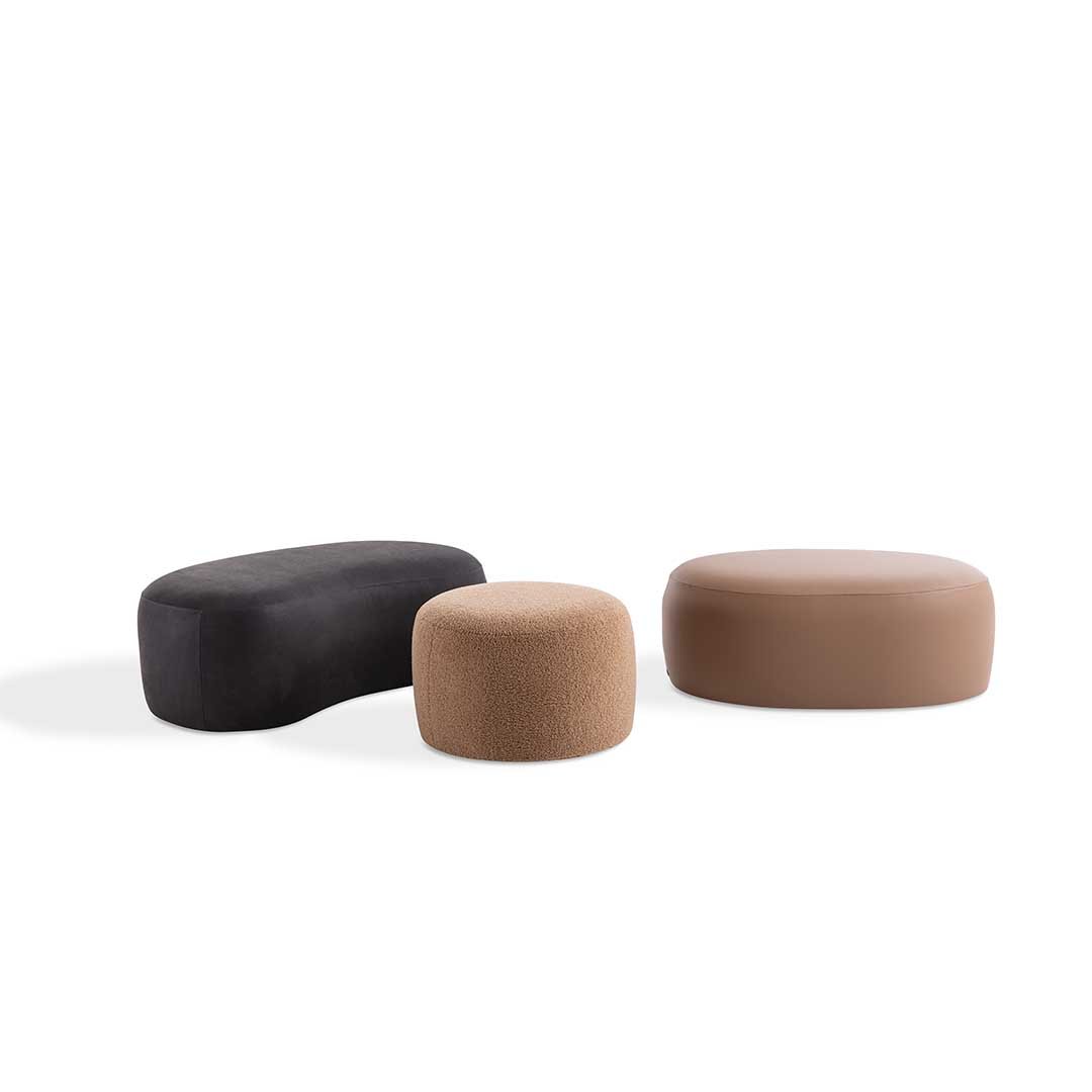 Through Orson, Elisa Ossino has reinvented the idea of the ottoman, offering a vision in which imaginative lines prevail over the definition of its function. The softly rounded, eye-catching organic shapes provide inspiration for a vast array of uses and offer maximum versatility. Wooden frame, cover in fabric or leather.