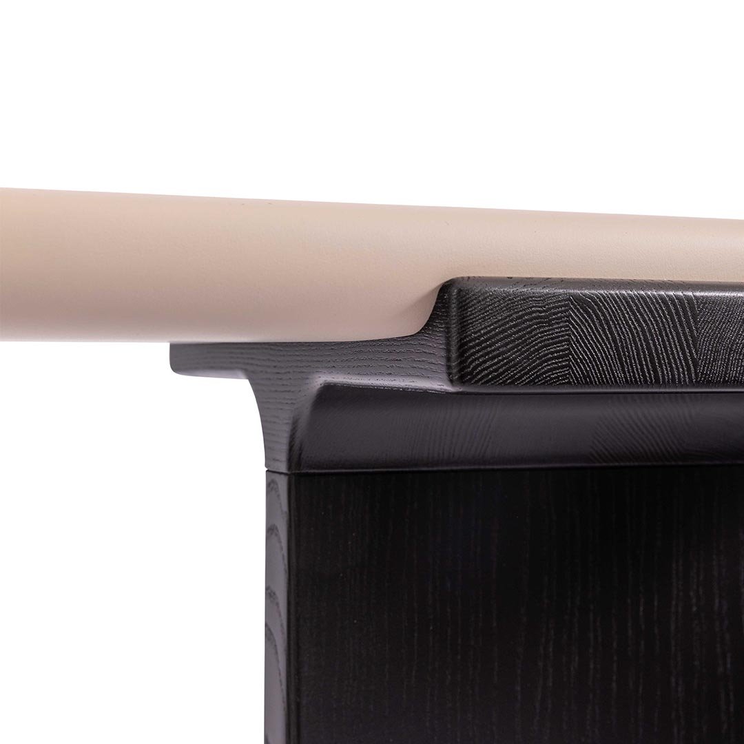 separate elements: a central top fitted with double T shaped legs that are moulded around