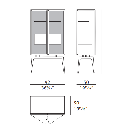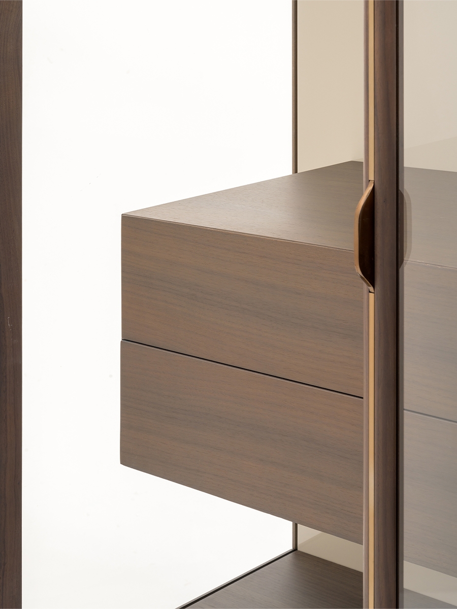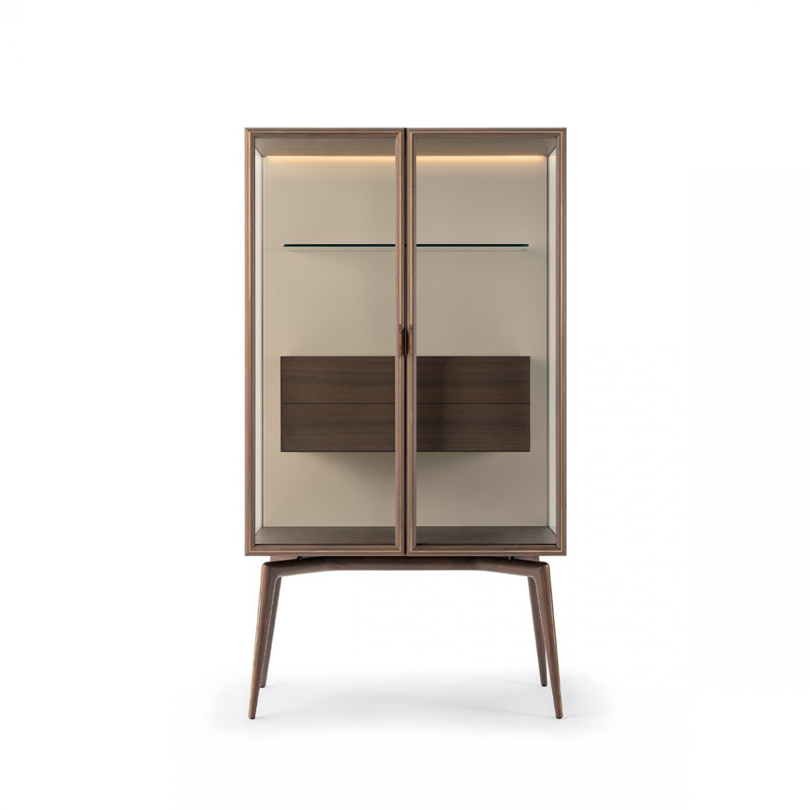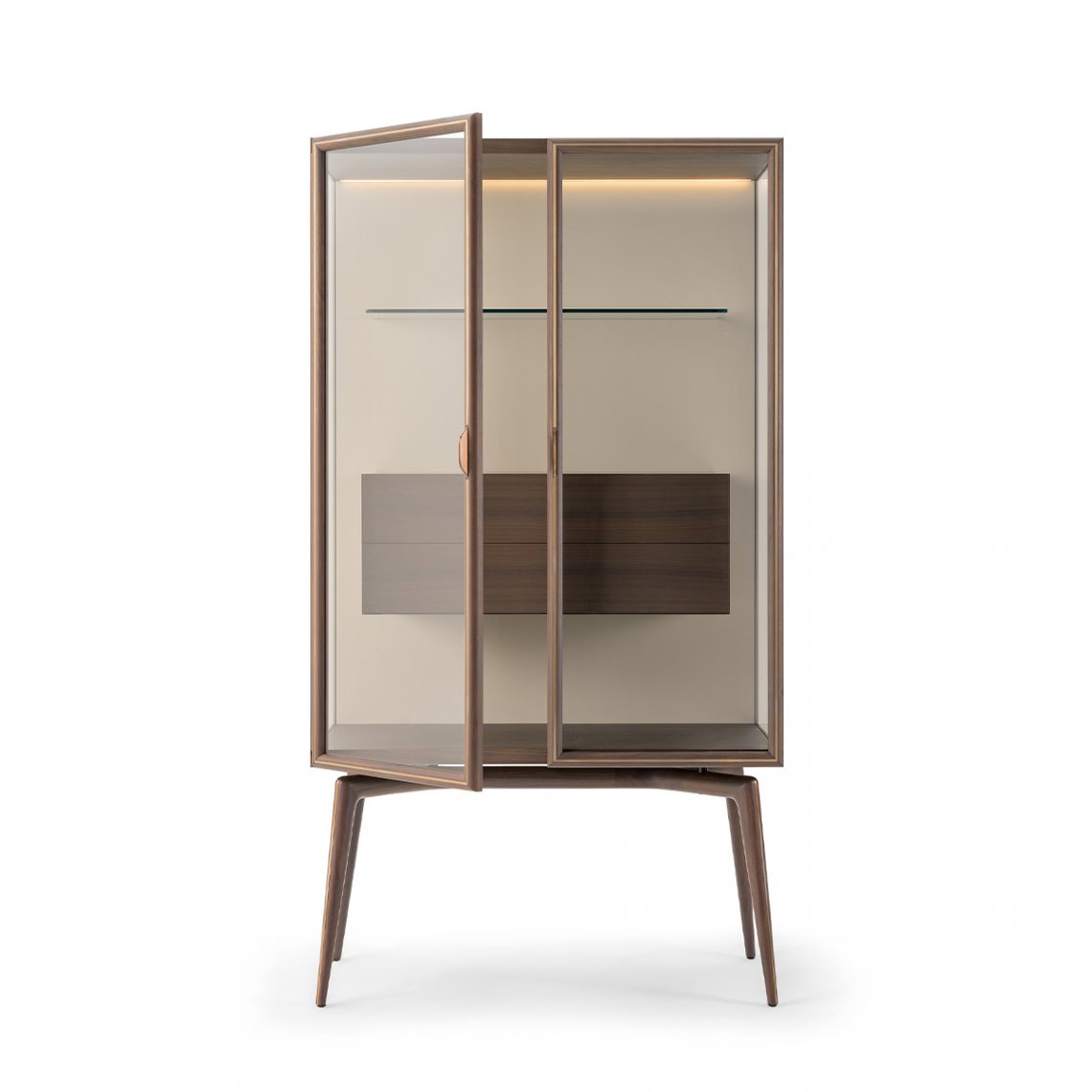 The vitrine of the Blues collection enhances lightness. The glass sides meet the solidity of the drawers with metal edges which, fixed to the bottom, seem almost suspended. The whole is supported by slender and slender legs, typical of the collection, transforming it into a real jewel. Its linear appearance, easily adaptable to any type of space and furniture, makes the vitrine perfect for any living area. The Blues showcase is available in different finishes as per sample card.