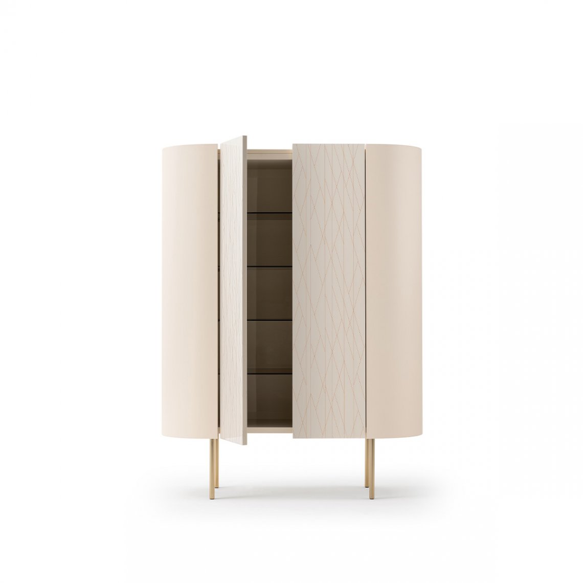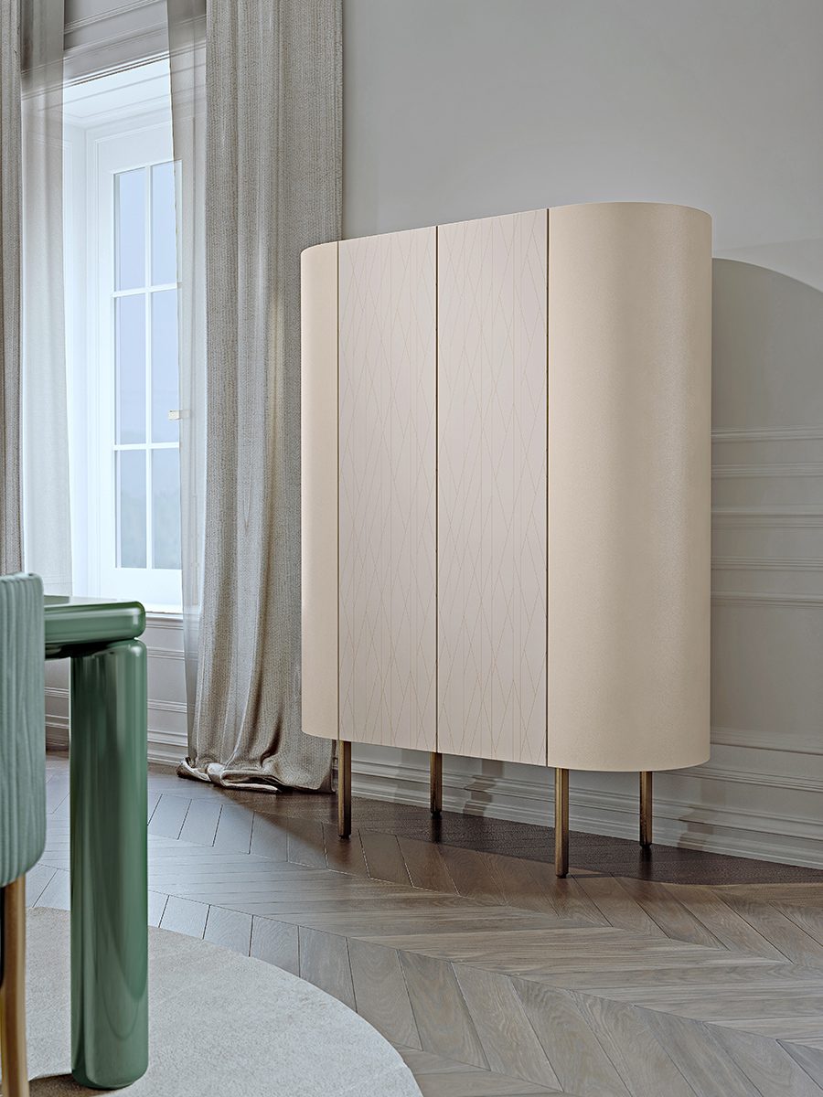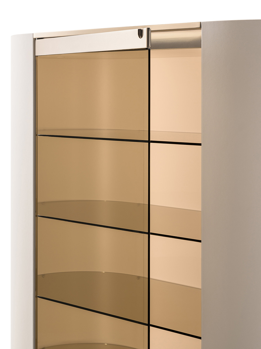 This customizable multi-function glass cabinet includes four glass shelves and comes with glass or wooden doors (with or without decoration). Roma glass cabinets have different finishes as shown in the sample booklet.