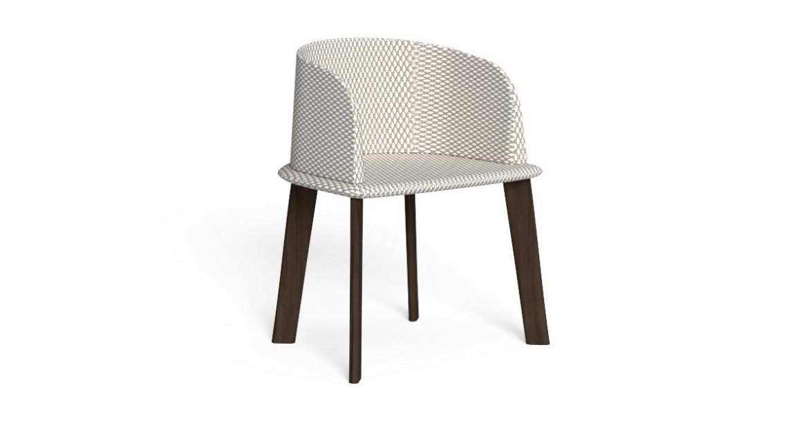 La seduta presenta lo stesso design della seduta lounge, permettendo l’abbinamento con tutti gli elementi della collezione, in particolar modo con quelli dalle linee morbide. La struttura è in legno. Cuscineria in tessuto, sfoderabile, facile da lavare e resistente agli agenti atmosferici. Imbottitura in quick dry foam.