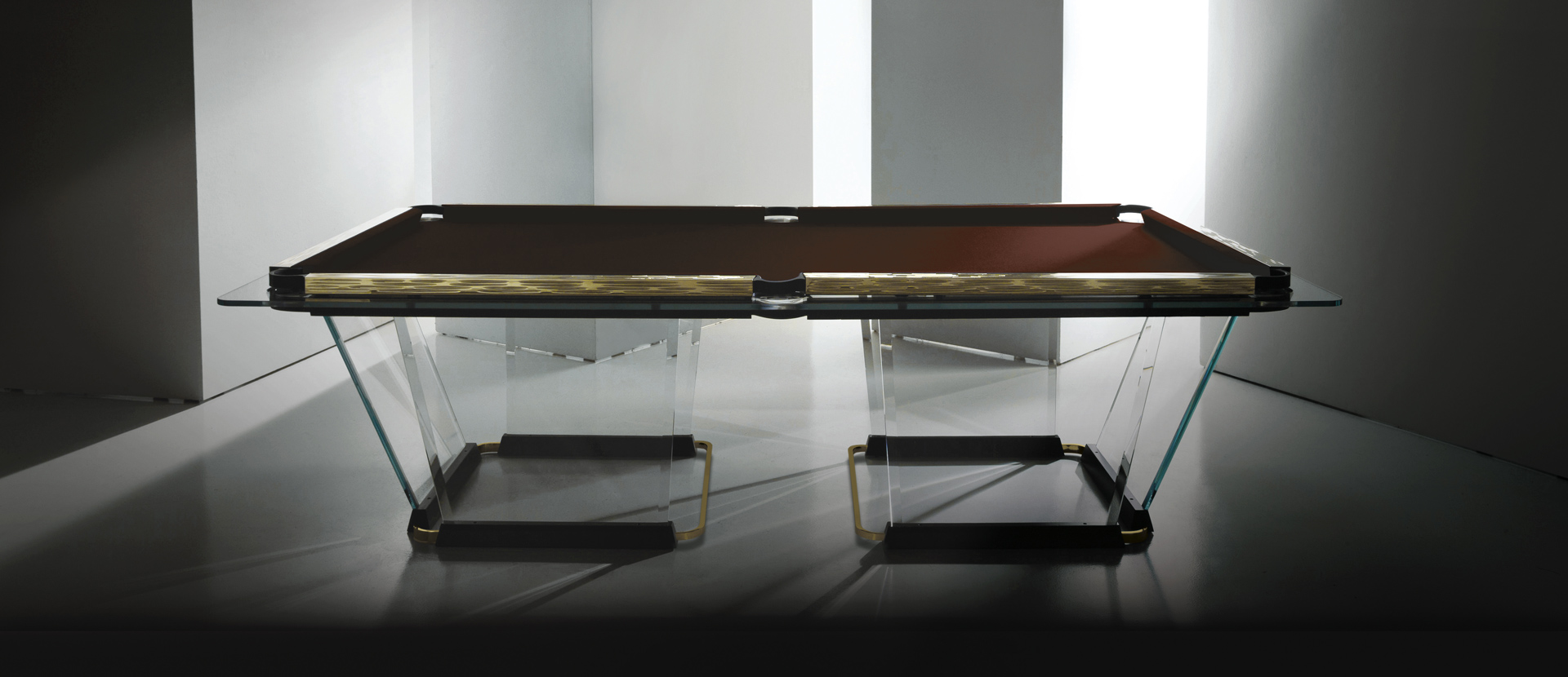 A pool table that has no rivals. Versatile and eclectic, the T1.2 is impressive, from its original system of interchangeable, magnetized side walls to the sophisticated, hand-stitched leather and rainbow of pool table cloths to choose from.