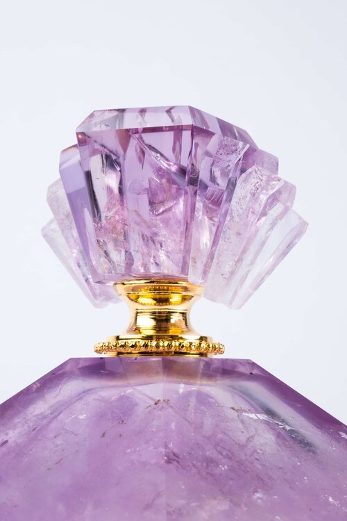 The diamond’s brightness of extra clear amethyst. A jewel detail that embellishes this hexagonal shaped casket box in a perfectly Art Decò style and yet with a contemporary design. Each piece is hand-cut and therefore unique. Each piece is hand-cut and therefore unique. Available in three sizes.