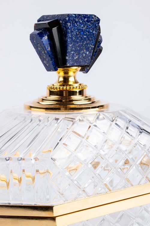 The diamond’s brightness of the french cut crystal exalts the deep color and grain of the stone. A jewel detail that embellishes this casket box in a perfectly Art Decò style and yet with a contemporary design. Each crystal is hand-cut and therefore unique.