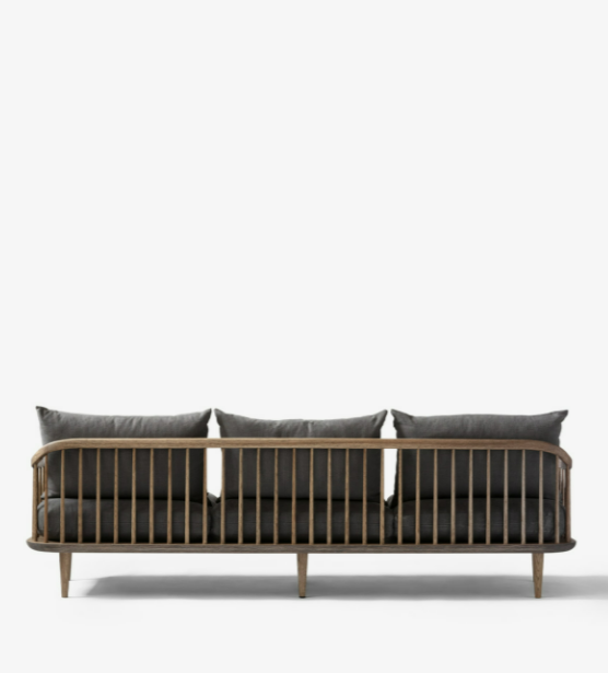 Veneer sheets formpressed together towards a solid wood insert. Milled into shape and lacquered. Natural Rattan weaved around a powder coated stainless steel frame.