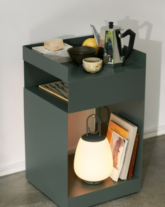 Veneer sheets formpressed together towards a solid wood insert. Milled into shape and lacquered. Natural Rattan weaved around a powder coated stainless steel frame.