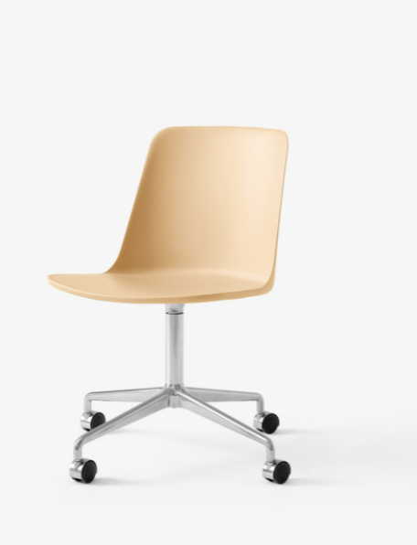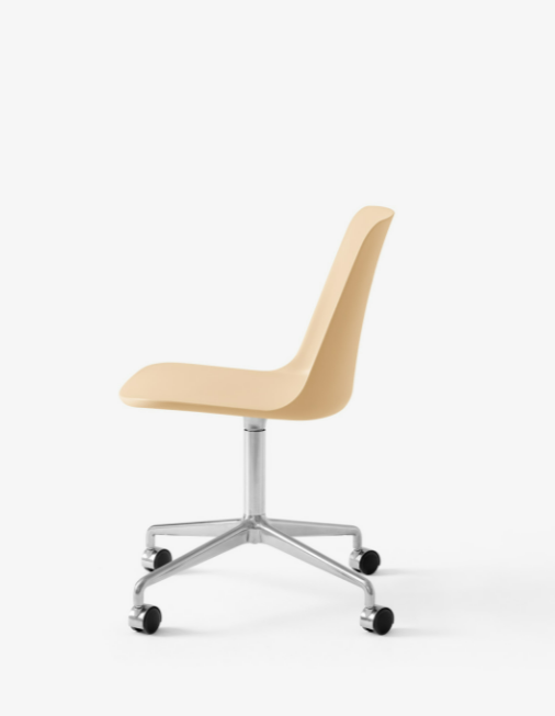 Veneer sheets formpressed together towards a solid wood insert. Milled into shape and lacquered. Natural Rattan weaved around a powder coated stainless steel frame.