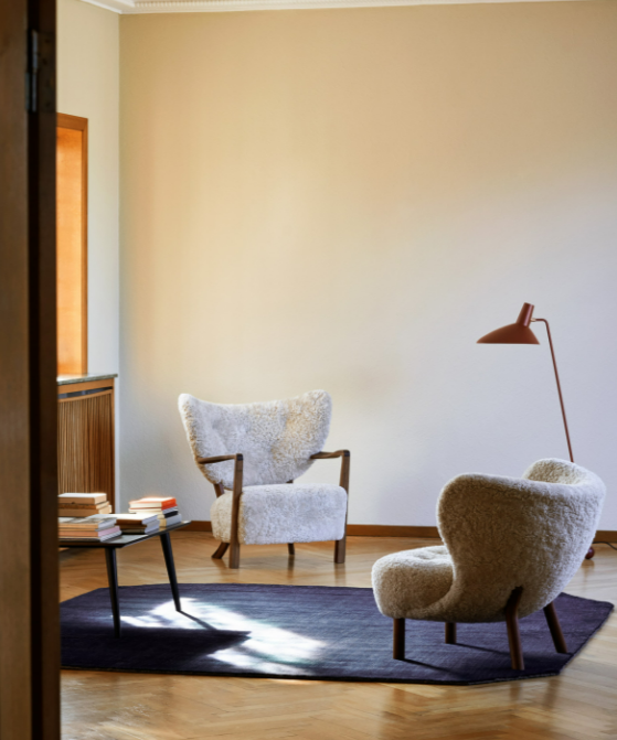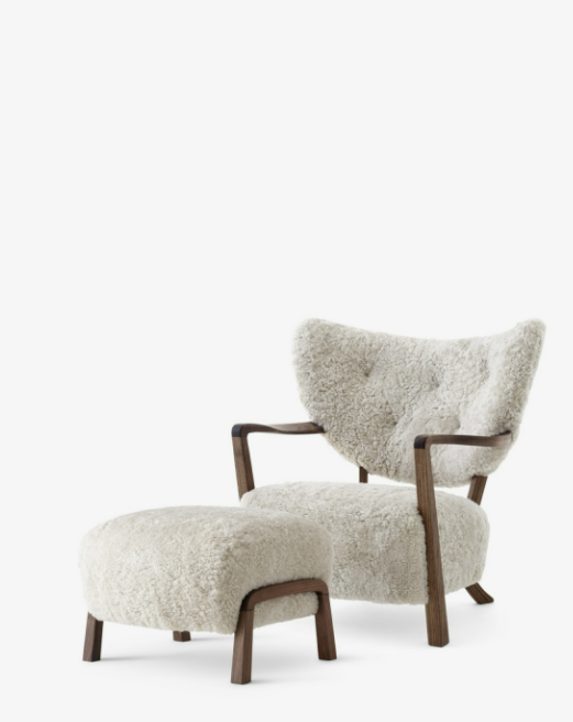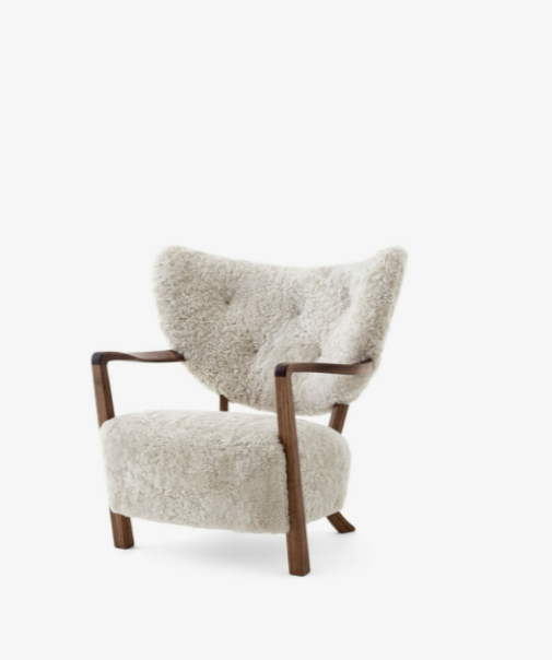 Veneer sheets formpressed together towards a solid wood insert. Milled into shape and lacquered. Natural Rattan weaved around a powder coated stainless steel frame.