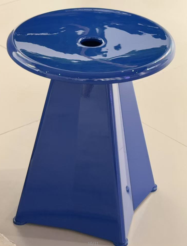 The practical stool Tabouret Métallique (1936) by Jean Prouvé, which can also be used as a small side table, exhibits structural affinities with the later Trapèze table.