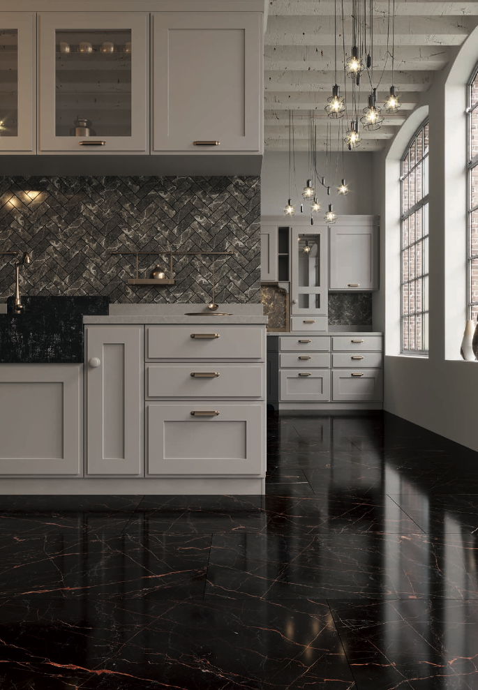 Volcano is a marble-effect porcelain tile offered with a Polished Fully Lappato finish.