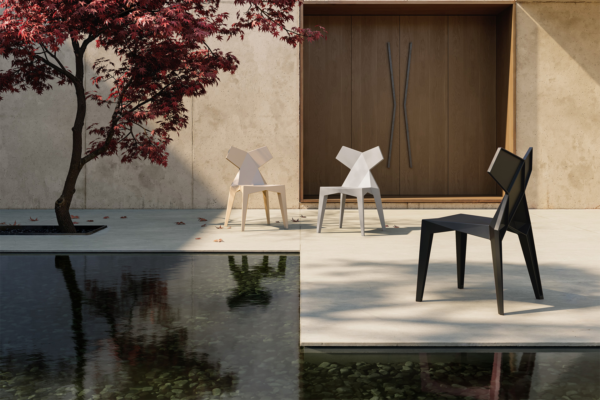 Made from polypropylene and reinforced with fiberglass manufactured by gas injection. Stackable. Available in various colors. Suitable for indoor and outdoor use.