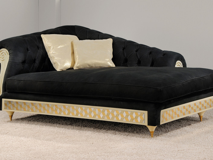 Le Chaise Longue di Vismara Design sono studiate per essere dotate di estrema comodità, senza mai rinunciare al design e all’eleganza. La Chaise Longue Comfort Nouveau è caratterizzata da un look contemporaneo e da una forte presenza scenica, la Chest Nouveau invece è la piu classica, con il tradizionale capitonné sullo schienale. Entrambi i modelli hanno una struttura imbottita in poliuretano espanso con densità differenti, seduta in piuma d’ oca e struttura in legno massello. La parte inferiore della Chaise Longue può essere impreziosita con infinite decorazioni: legni intagliati, mosaico lavorato a mano, formelle in vetro di murano, oro e argento foglia e legni intarsiati, pelli ricamate, marmi e molto altro. Ogni pezzo può essere realizzato in differenti rivestimenti pelli, Nabuk, eco-Nabuk, velluto o qualsiasi tessuto prediletto dal cliente.