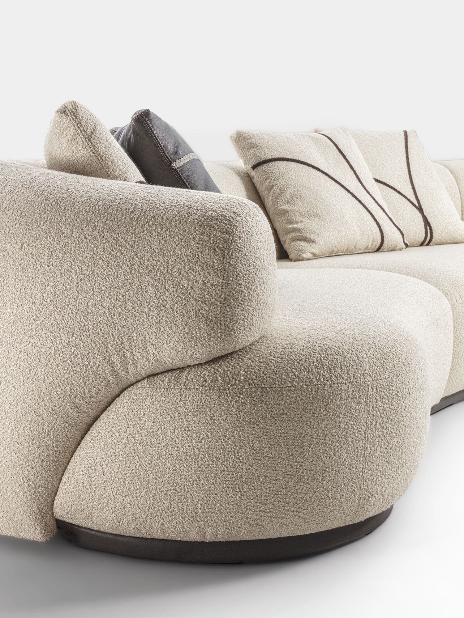 Il nuovo divano Monaco, design by Luca Erba, si contraddistingue per le sue forme non convenzionali, i morbidi elementi curvilinei e il dettaglio della sovrapposizione del bracciolo piacevolmente adagiato sul cuscino di seduta monovolume. La visione dell'architetto mira a trovare l'essenza profonda di ogni materiale, per una reinterpretazione morbida e sensuale di silhouette ispirate alla natura. Ben oltre il classico elemento seduta di forma rotonda, il divano Monaco propone elementi inaspettati per nuove soluzioni progettuali e spazi interamente personalizzabili. Il divano modulare Monaco permette di procedere con soluzioni classiche e lineari fino ad ambientazioni più sofisticate. La collezione è completata da una poltrona.