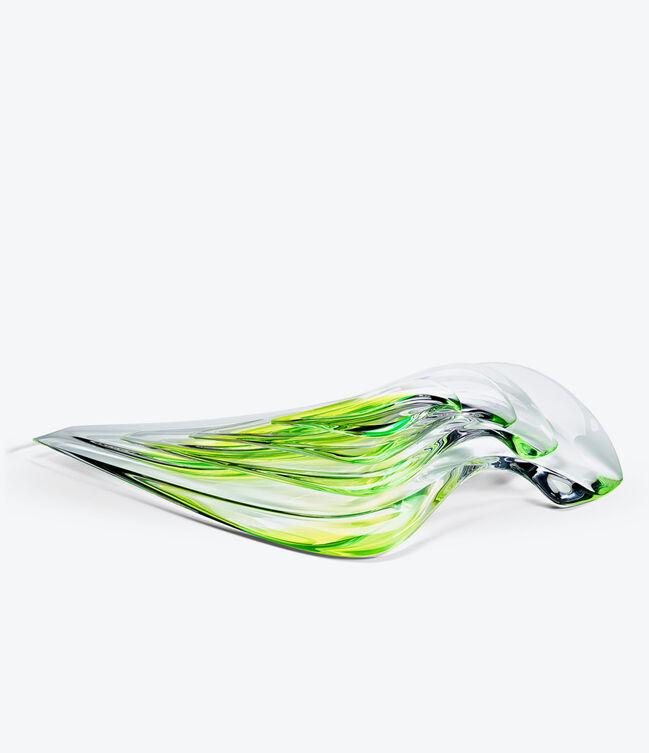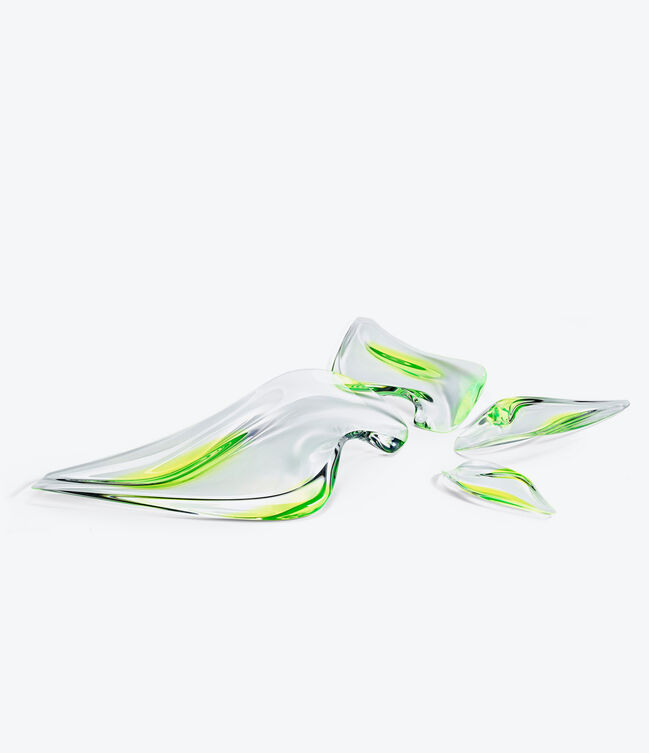 AQUA Platter - hand-polished acrylic with a vibrant streak of lime - the individual petals can be stacked or nest together. A Certificate of Authenticity will be provided.
