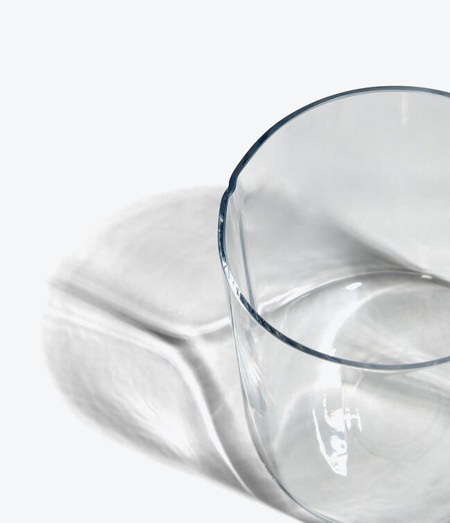HEW Tumbler Set of 4 - polished blown glass - subtle indentations carve the surface - creating channels that extend and widen from the rim to merge seamlessly.