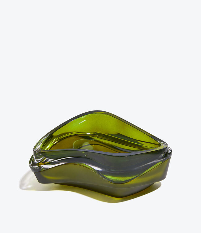 PLEX Vessel - multi-use object in crystal glass - composed of two stackable parts in a frosted and polished finish.