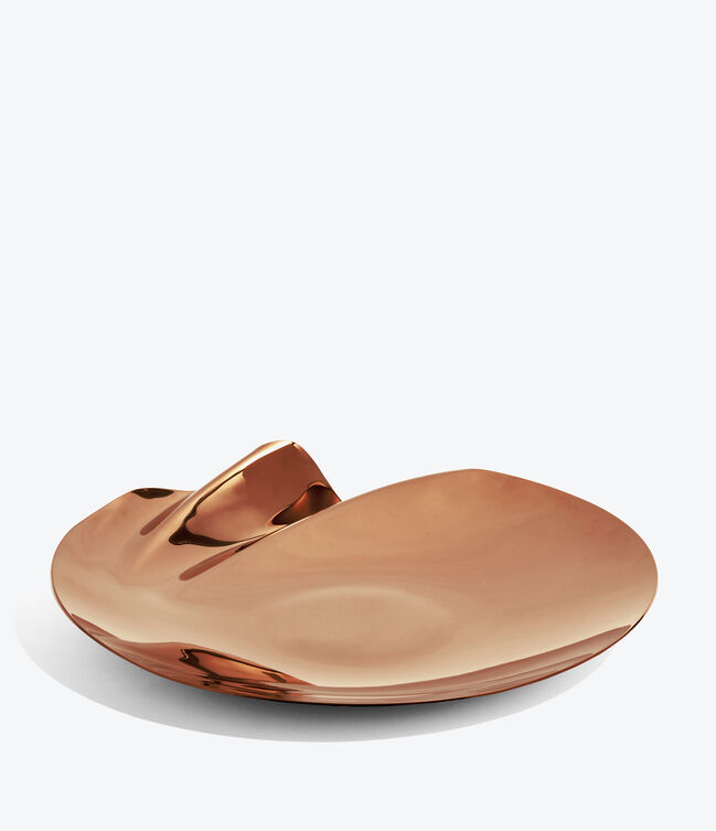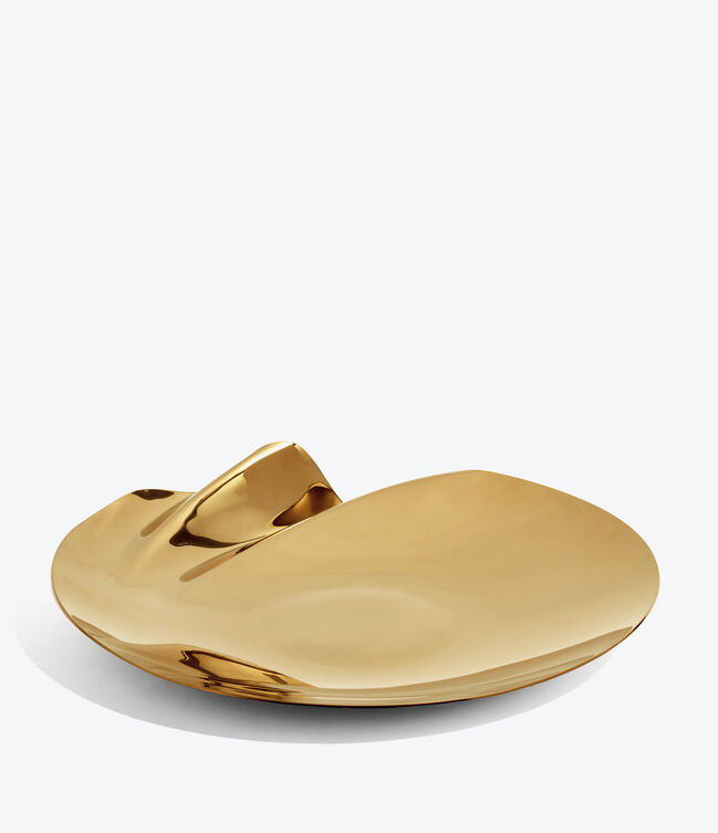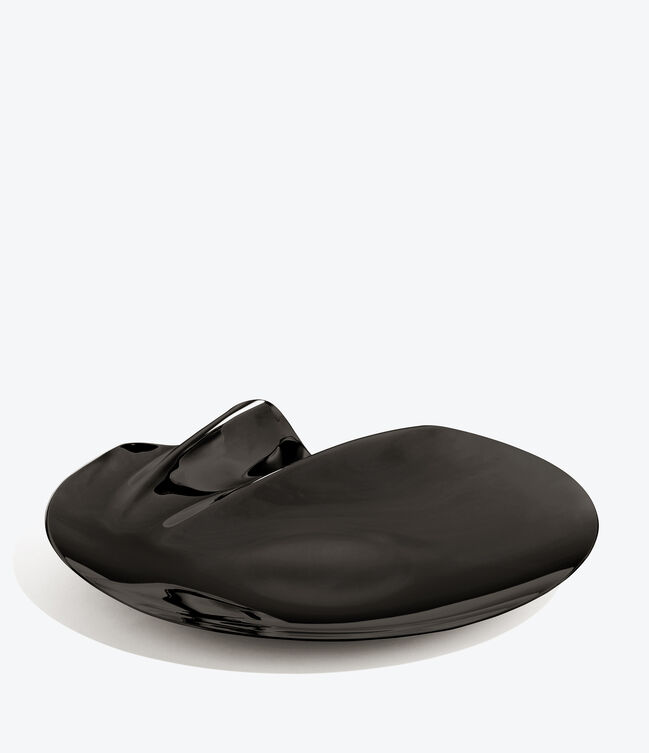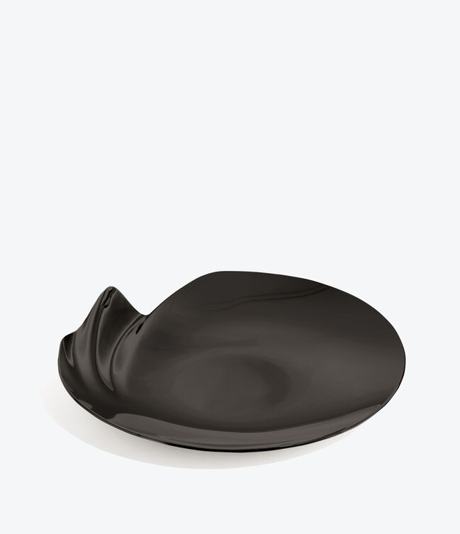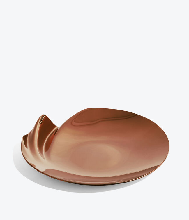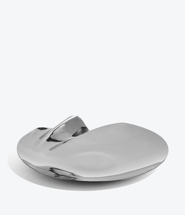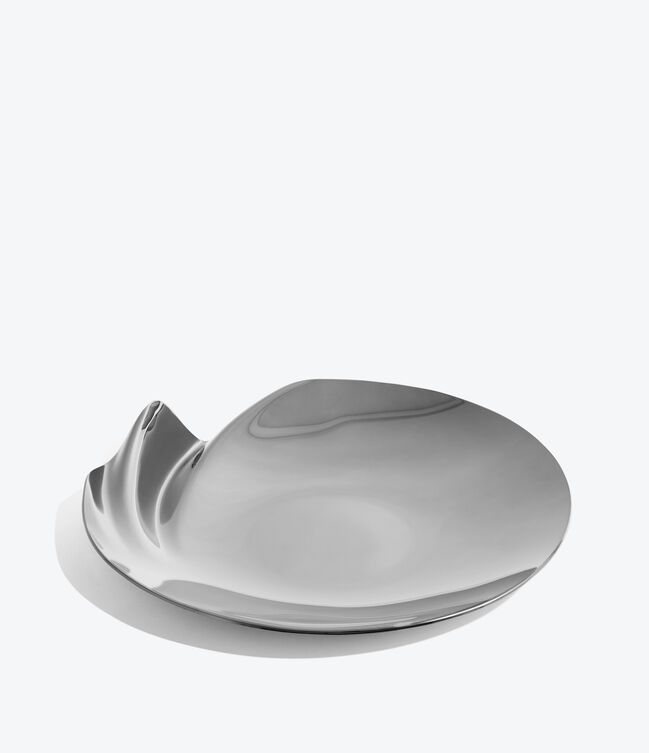 SERENITY Platter - polished stainless steel - with a distinct undulation along a portion of the circumference.