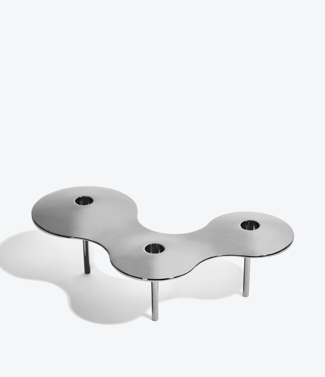 CELL Candleholder - in polished stainless steel - designed to hold two candles - inspired by the replication and growth of cellular organisms.