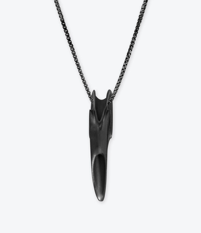 Tyne Chain and Pendant in brushed stainless-steel. Informed by the mathematical principle of minimal surface, interweaving without constraint, the result is a collection that maximises tactility through the interplay of solid and void.