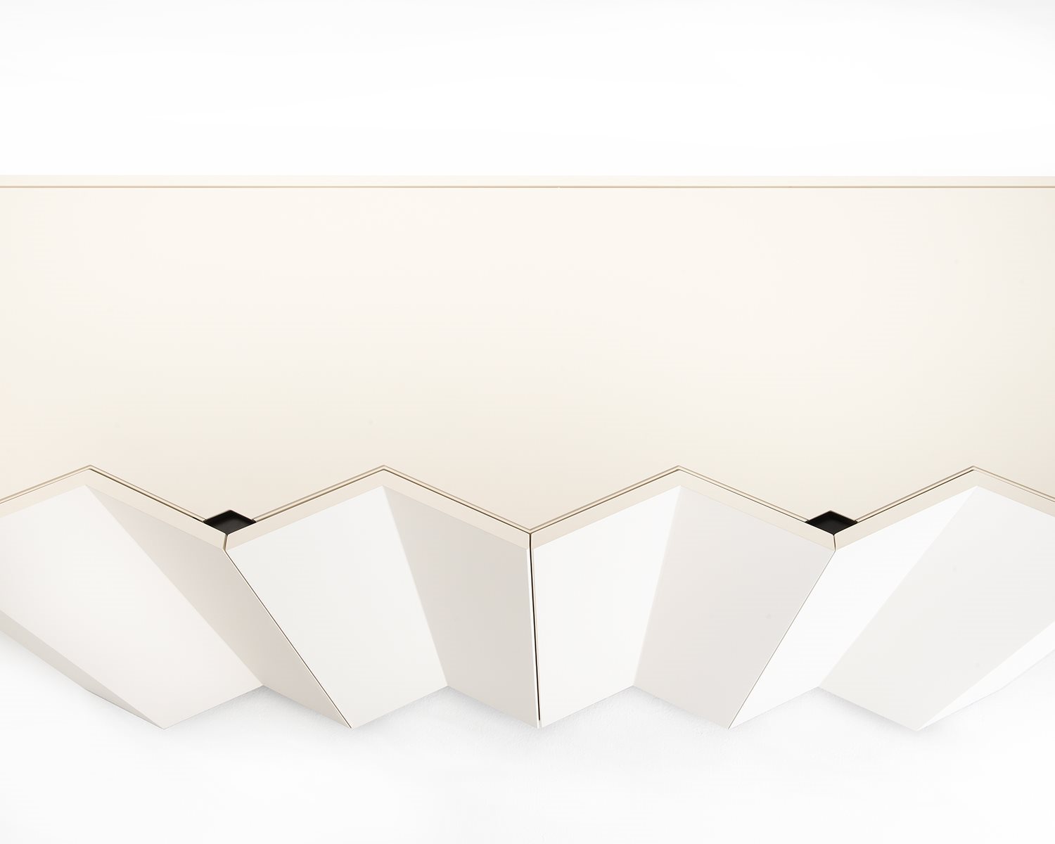 The magic of the Z24 collection lies in its ability to create an interplay between light and shadow through the zigzag pattern on the front that varies with the angle and intensity of the light, giving the pieces a unique dynamism and visual depth.