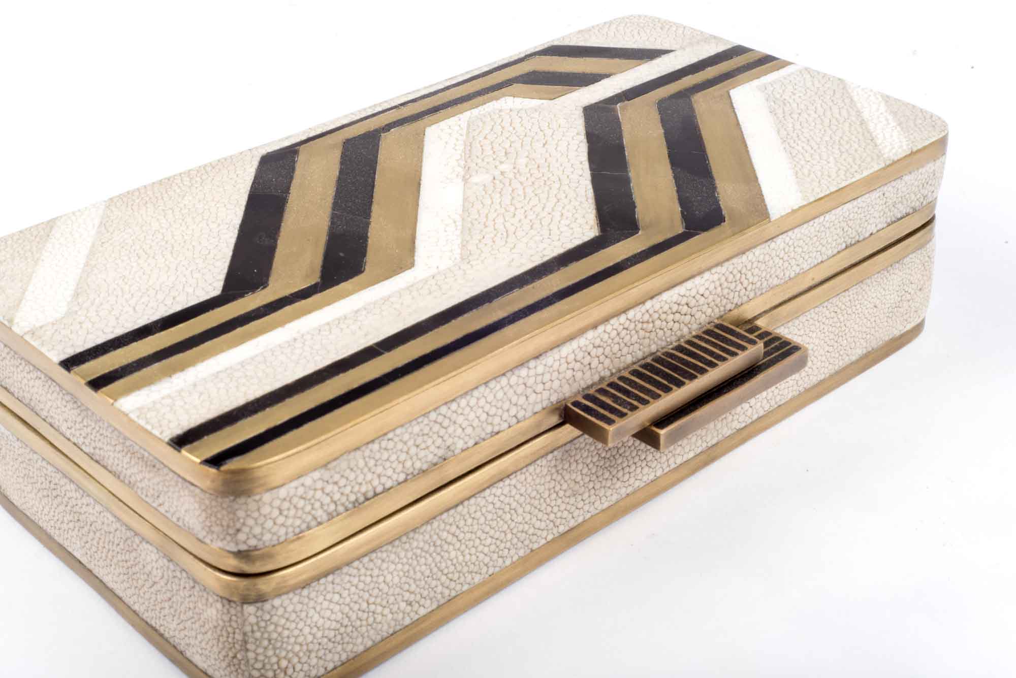 The Blade Runner Light Jewelry Box, includes intricate inlay work to create this bold & modern pattern. This item comes with a removable velvet interior box. The small size is perfect to store everyday wears, larger versions are also available.