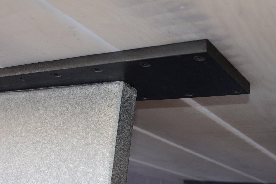 In line with the history of the materials used, the stone legs are inspired by the stone slabs worked on his top, so we have the same stone either in legs and in the powder inside the table top.