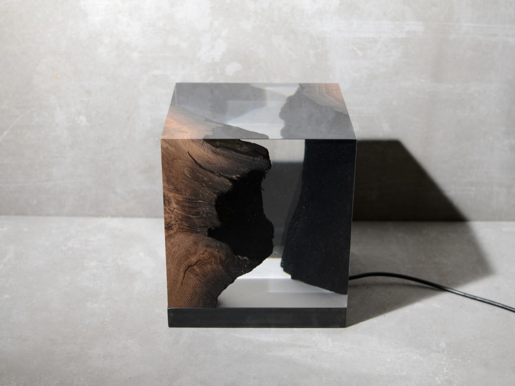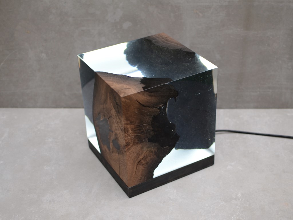 Like the water over millennia, the alcarol’s transparent resin surrounds the organic shapes of this unique wood, preserving and enhancing all its preciousness and charm.