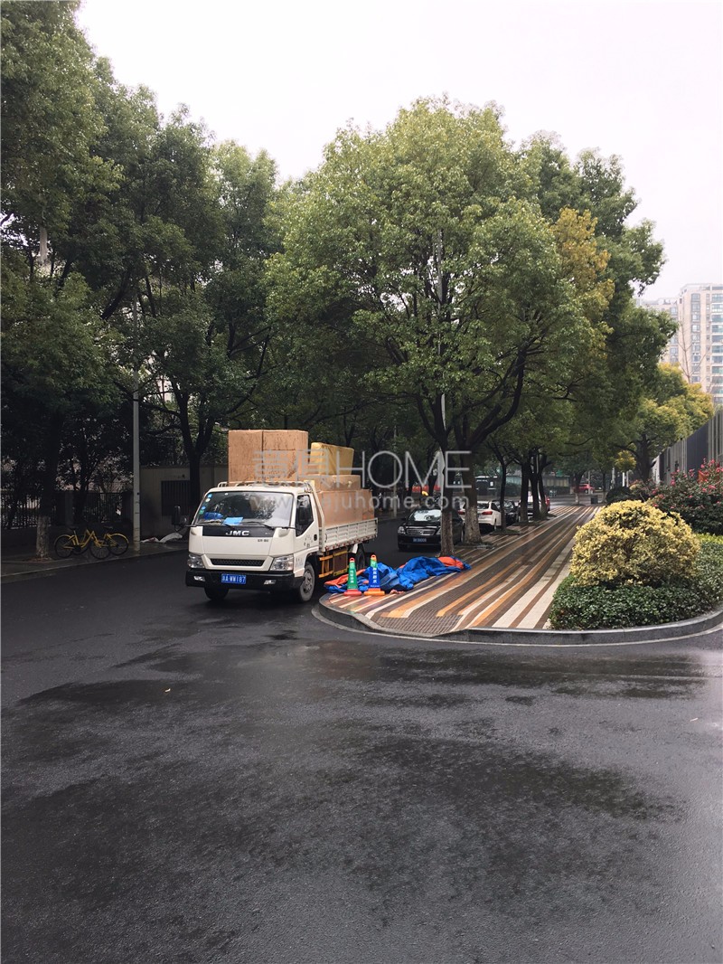 經(jīng)過前期路勘工作,意俱團隊將貨車停在小區(qū)方便卸貨的地方。