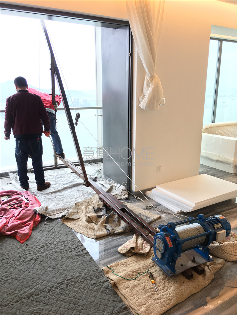 于是意俱利用專業(yè)知識,輕車熟路的在達(dá)46樓的高度吊裝沙發(fā)。