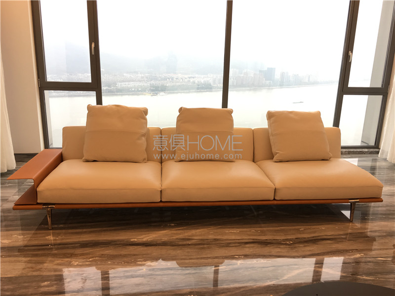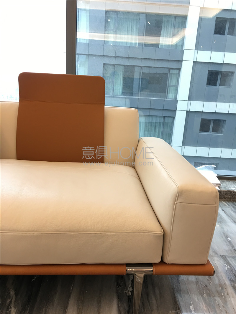 橘色馬鞍皮搭配let it be沙發(fā),在大理石地板的反光襯托下,更加低調(diào)奢華。