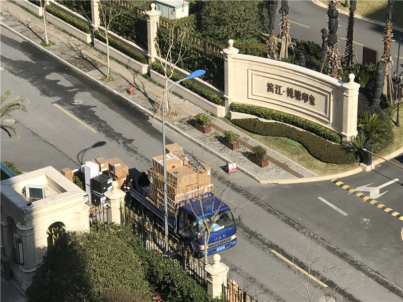 前期路勘工作結(jié)束后,意俱團(tuán)隊(duì)將貨車停在小區(qū)門(mén)口卸貨并配送至客戶家中。