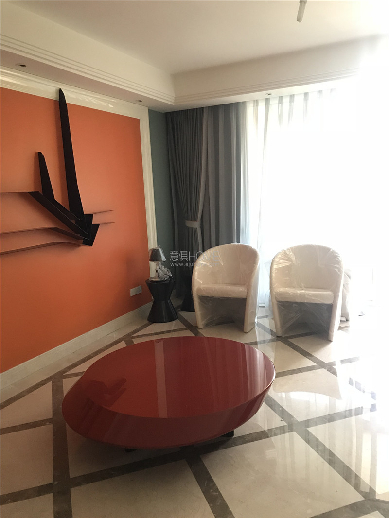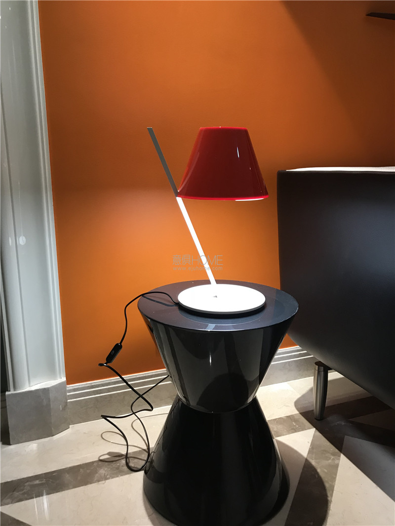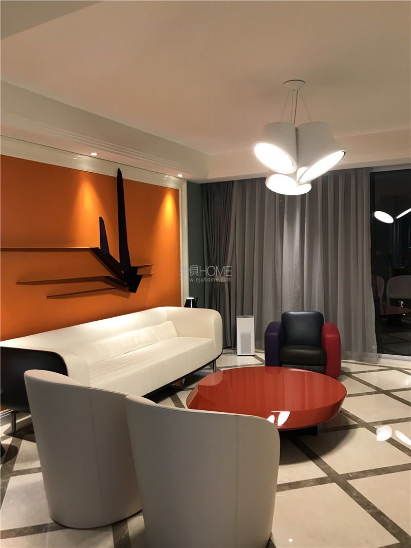 紅色亮光漆臺(tái)面加上黑色啞光漆底座,橢圓形的茶幾面充滿設(shè)計(jì)感,大紅的顏色與橘色的墻面完美融合。