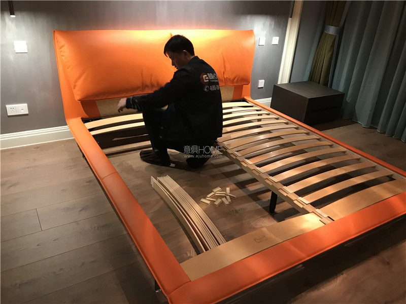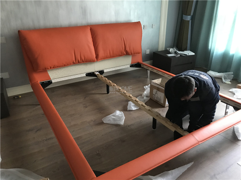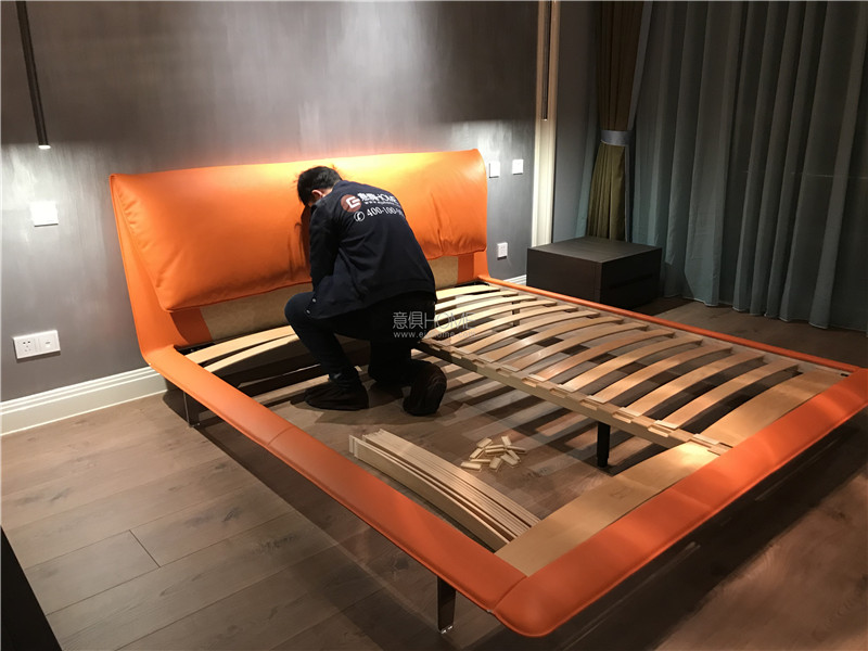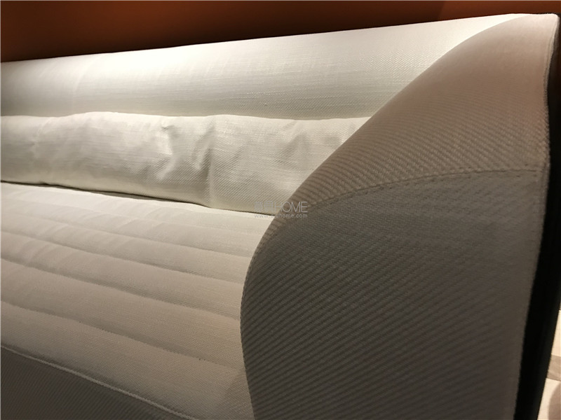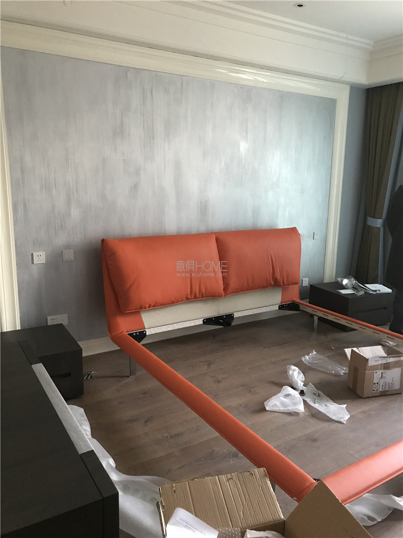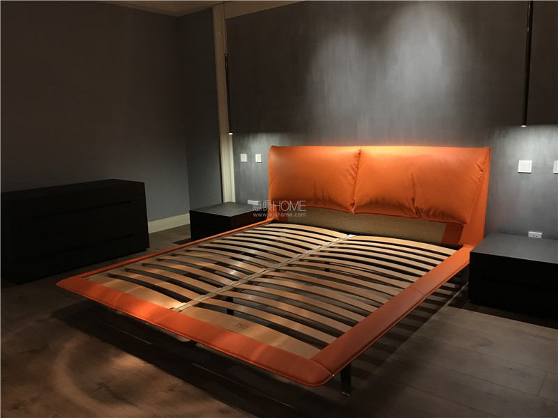 這是POLTRONA FRAU 的 JOHN-JOHN床,在顏色上客戶選擇了與客廳墻面相同的橘色,光滑的高級(jí)皮質(zhì)在燈光下顯得更加有質(zhì)感。