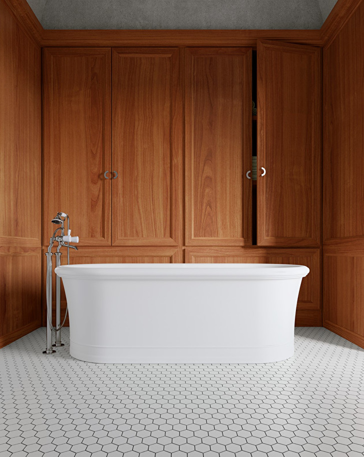 With its exquisitely classic style and soft touch surfaces that recall the texture of polished natural stone, the Celine White freestanding bathtub is a perfect blend that combines the elegance of tradition with the quality of innovation. Its monolithic body is made with 100% White Tec Plus, a sustainable material certified Green Guard Gold that uses Biobased? plant-derived resins. 100% made in Italy.