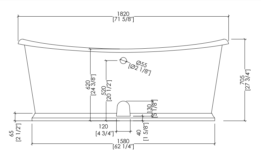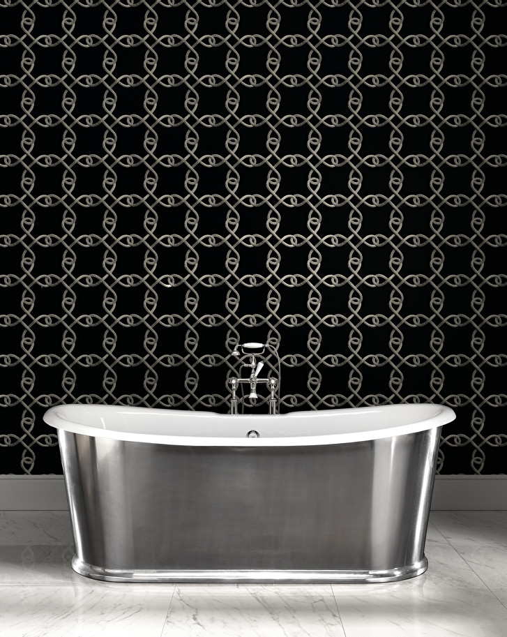 A cast iron bathtub to be placed in the middle of the room which combines references to tradition, such as the enamelled interior, with the contemporary aspects of the external cladding, consisting of polished aluminium leaf.