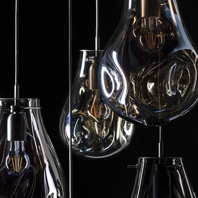 Varied colors, transparency and continuously changing shapes – the characteristic features of soap bubbles--inspired this BOMMA collection. When lighted, the metallic sheen of its surface transforms to iridescent and translucent, exposing its crystal character. The entire collection is produced using the technique of hand-blowing without a form. The seemingly perfect droplet of molten glass is given a unique shape, as well as a unique color spectrum. Among Soap Collection’s main advantages are the options to create impressive compositions from a larger number of individual light fixtures or combining their color schemes.