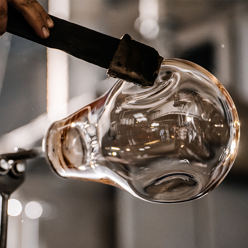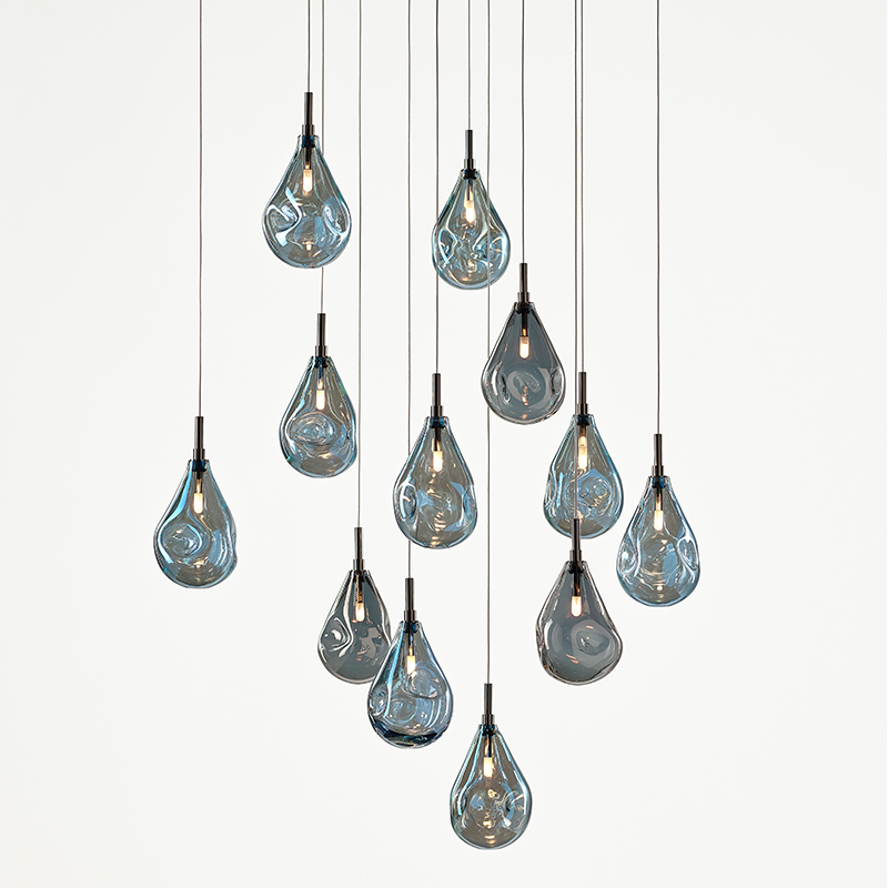 Varied colors, transparency and continuously changing shapes – the characteristic features of soap bubbles-- inspired this BOMMA collection. When lighted, the metallic sheen of its surface transforms to iridescent and translucent, exposing its crystal character. The entire collection is produced using the technique of hand-blowing without a form. The seemingly perfect droplet of molten glass is given a unique shape as well as a unique color spectrum.  The Soap Mini collection allows unlimited space for your creativity, with the option to create as large groups of crystal drops as you fancy – from smaller compositions to expansive light constellations.