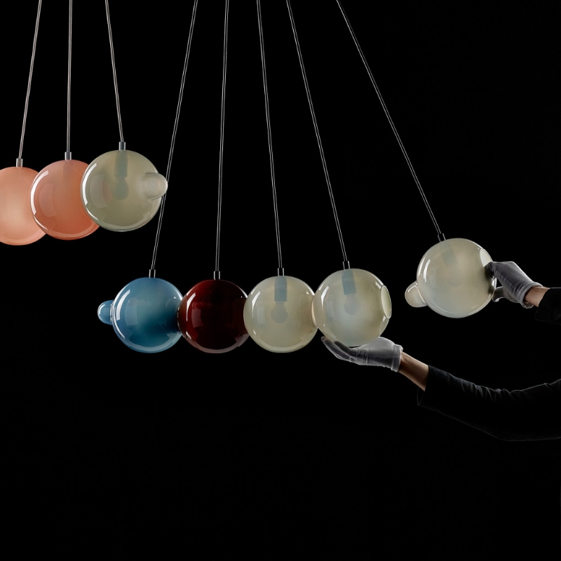 A BOMMA collection inspired by Newton’s cradle, capturing the moment of an object in motion. The playful and colorful Pendulum combines the laws of physics and high esthetic requirements with top-quality craft, reminding us that the world is in continual motion. Each crystal object in the collection is hand-blown, contributing to a one-of-a-kind piece. Yet, thanks to an exceptional attention to detail, their combination with other components creates an almost spiritual sense of harmony. Color variations, along with the option to combine a greater number of shapes, enable you to express your own creativity and advance your individual approach to a new level.