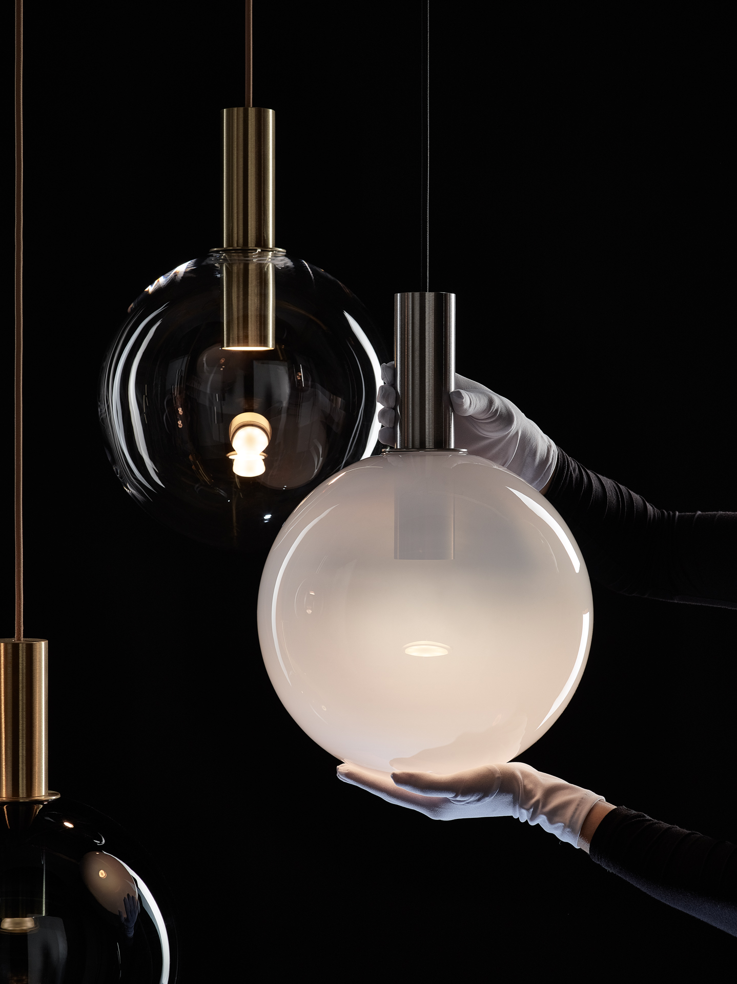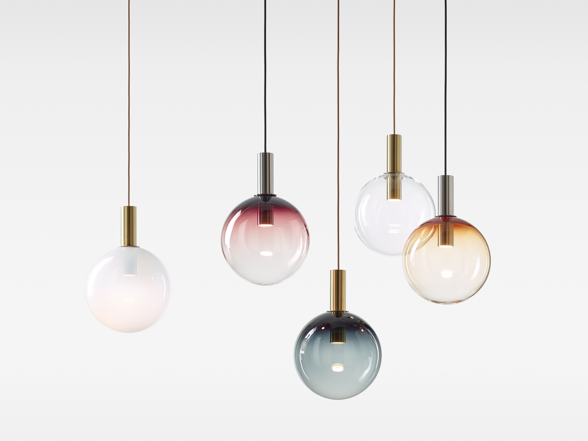 The Divina Collection emulates the timeless concept of a spherical glass body, combined with the delicate touch of a color gradient, an idea used in the past by DECHEM studio. Divina lights are the younger siblings of the Phenomena Collection. Unlike Phenomena, the Divina lights are smaller and more suitable for intimate interiors. Divina is ideal for use above a desk or dining table, its light source located within the bottom of the cylindrical mounting body. Its refined color gradients lend it an aura of timeless dream worlds, while remaining visually striking.