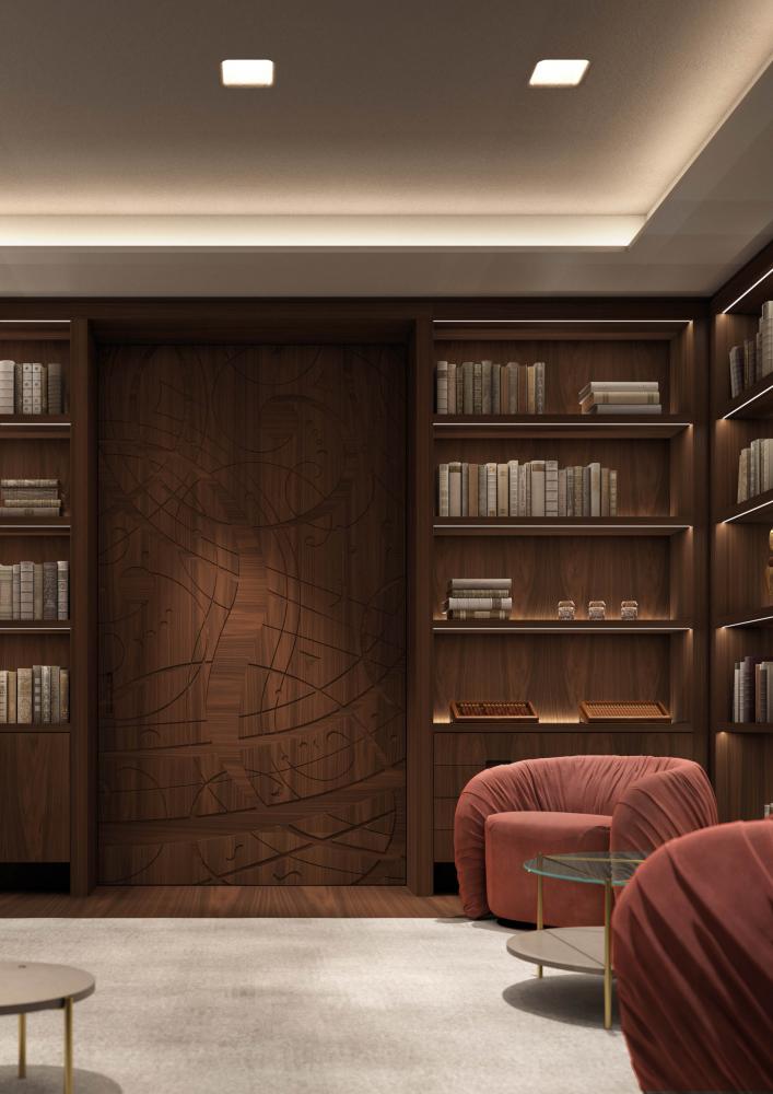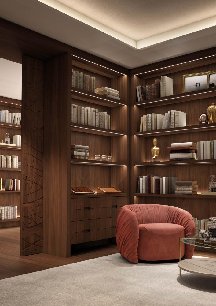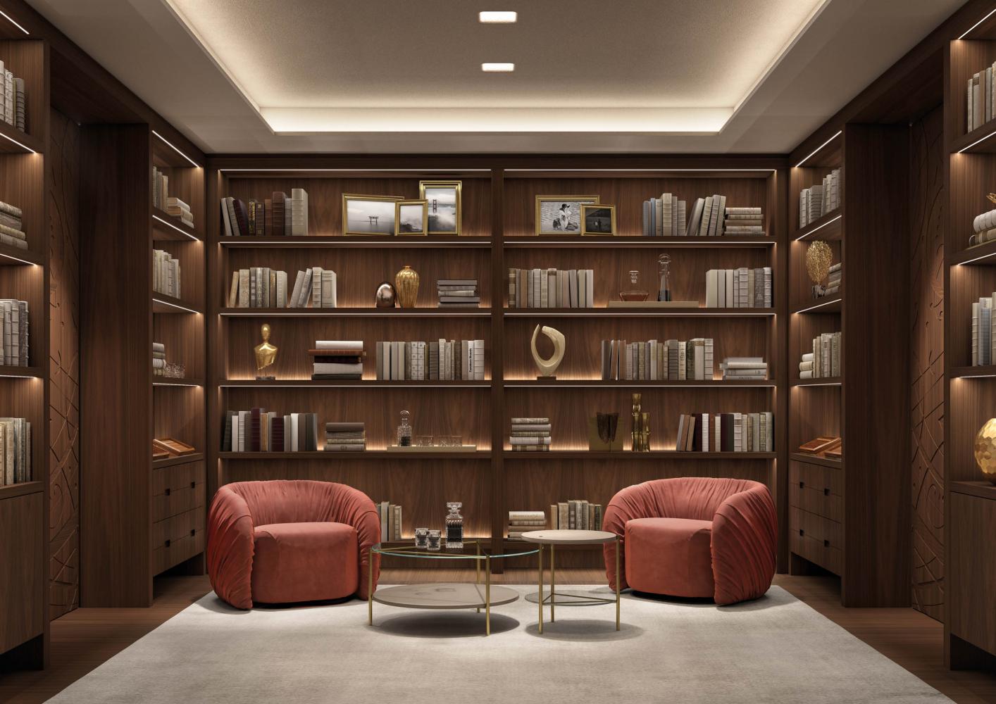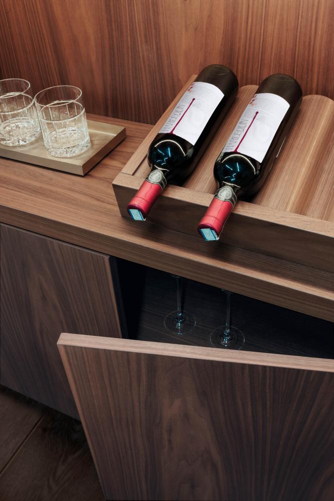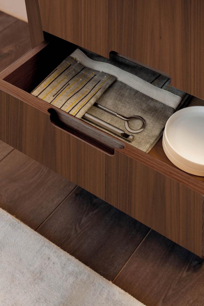 The versatile and vigorous Graffiti system can be completely customized and composed of bookcases, hinged doors containers and drawers, as well as being integrated with sliding and hinged doors.