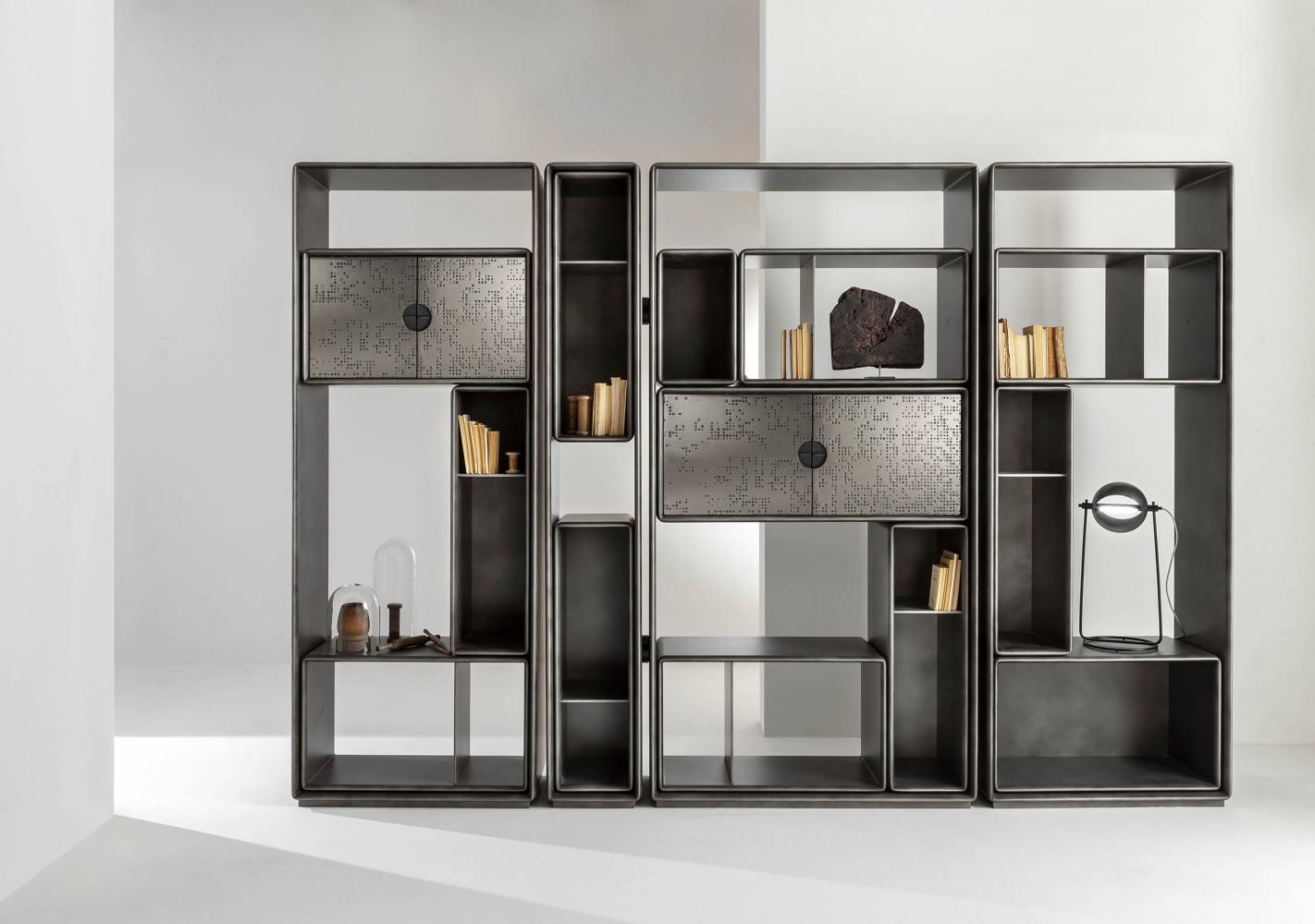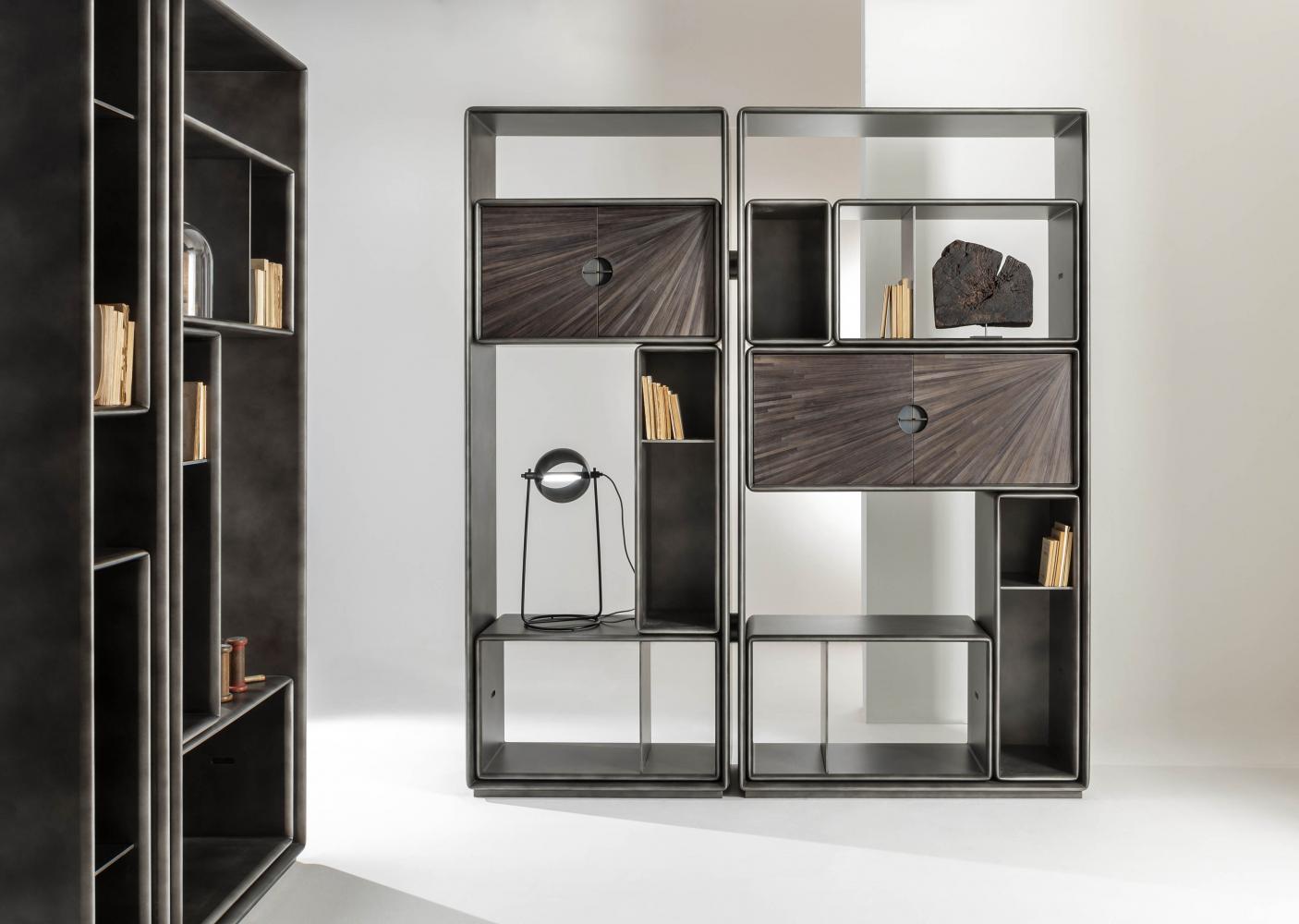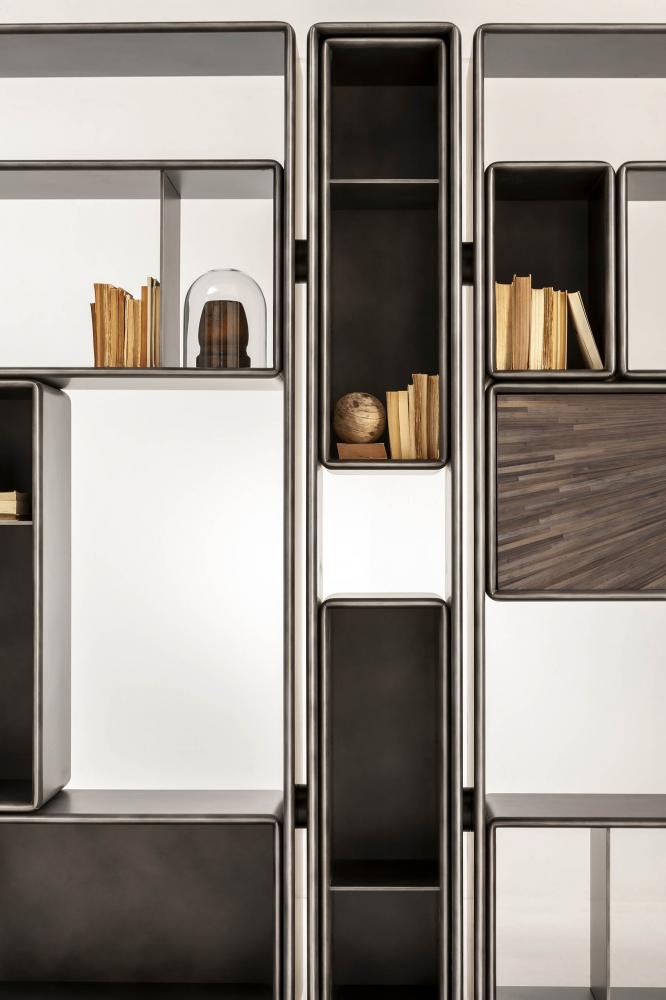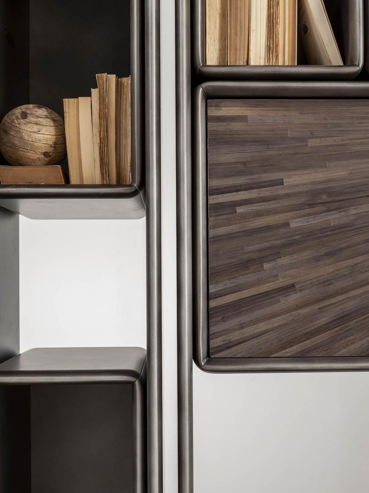 Part of the iconic Talento collection, this bookcase repeats the skilful balance of full and empty spaces, the rounded edges and the particular recessed design handle, giving life to a new style element designed and equipped to elegantly showcase any object.