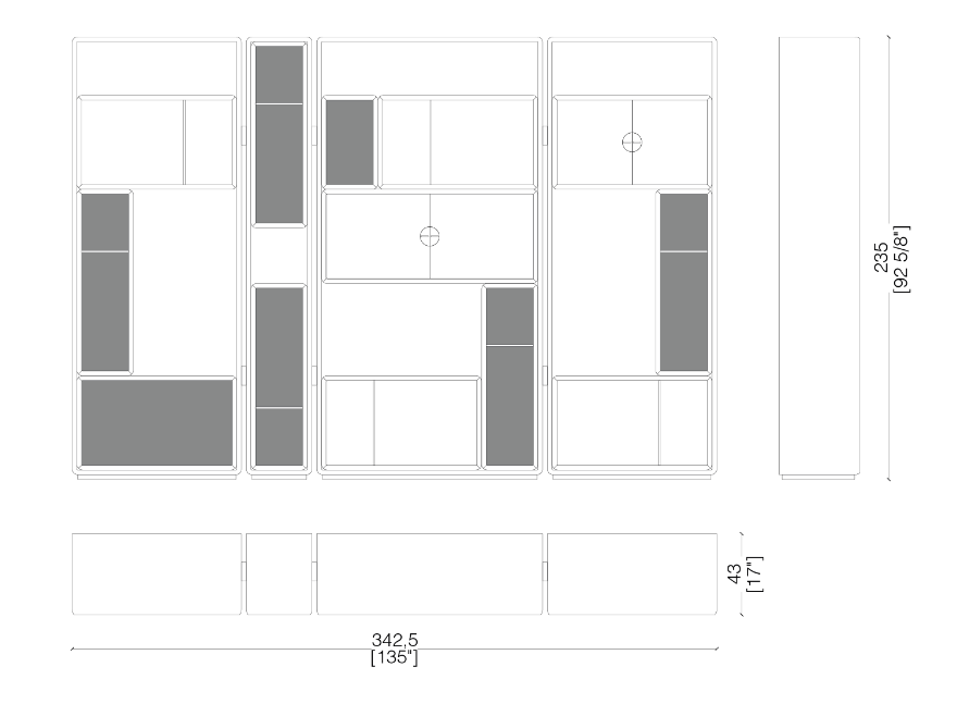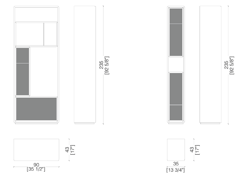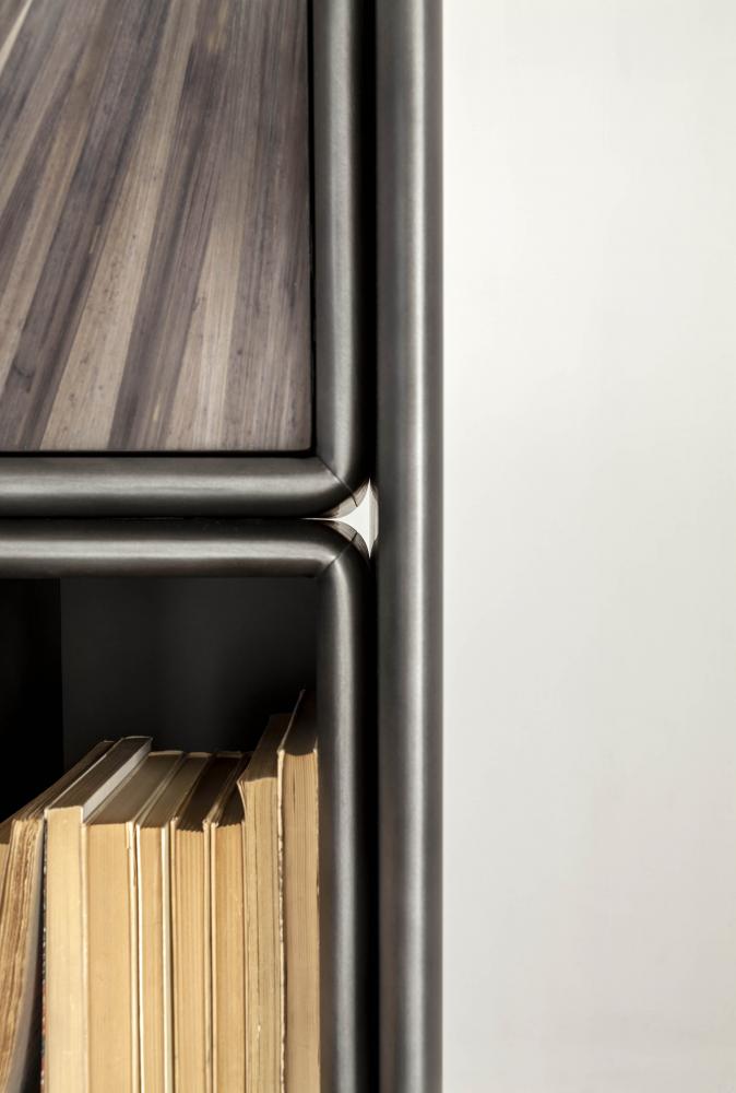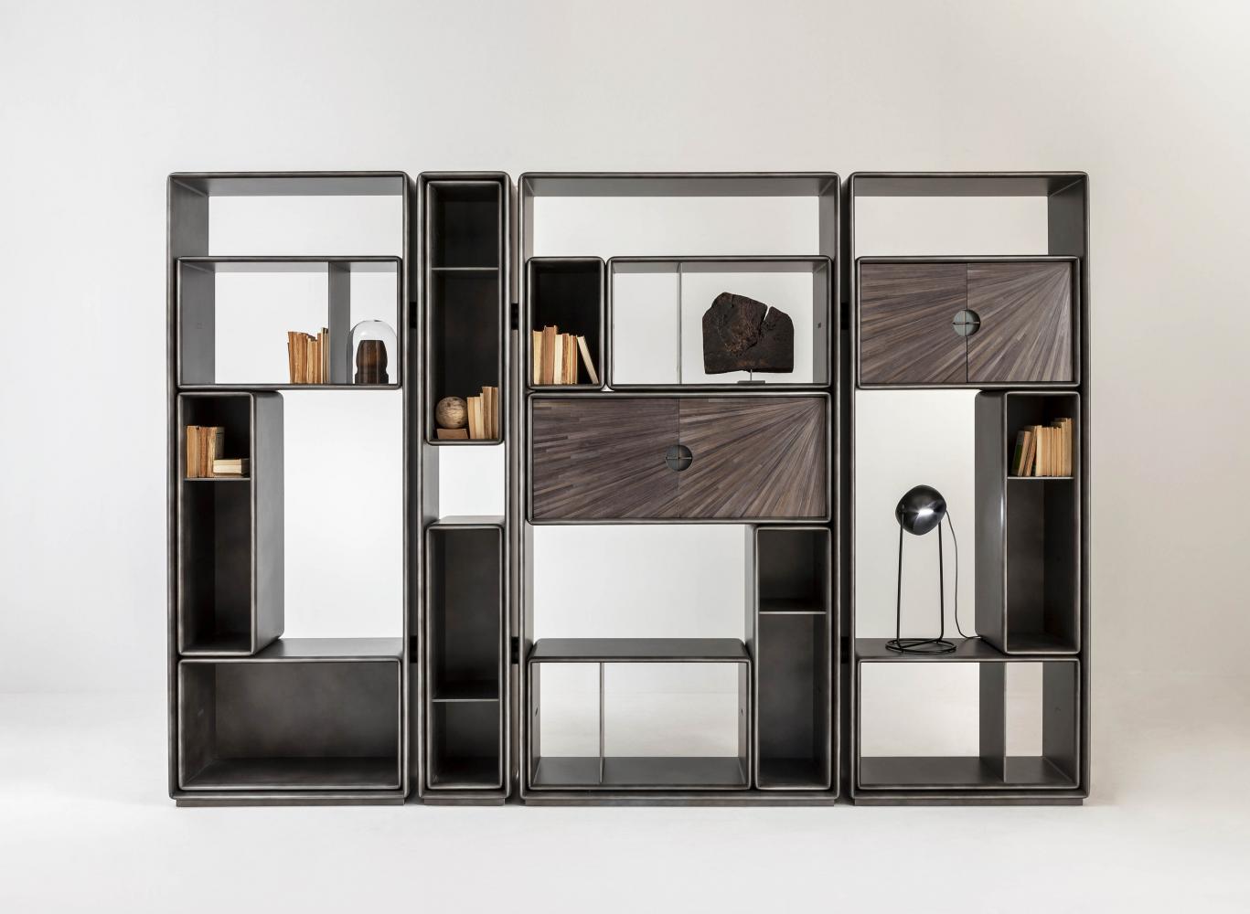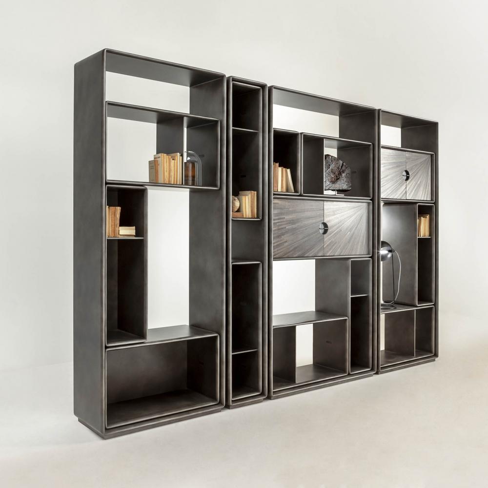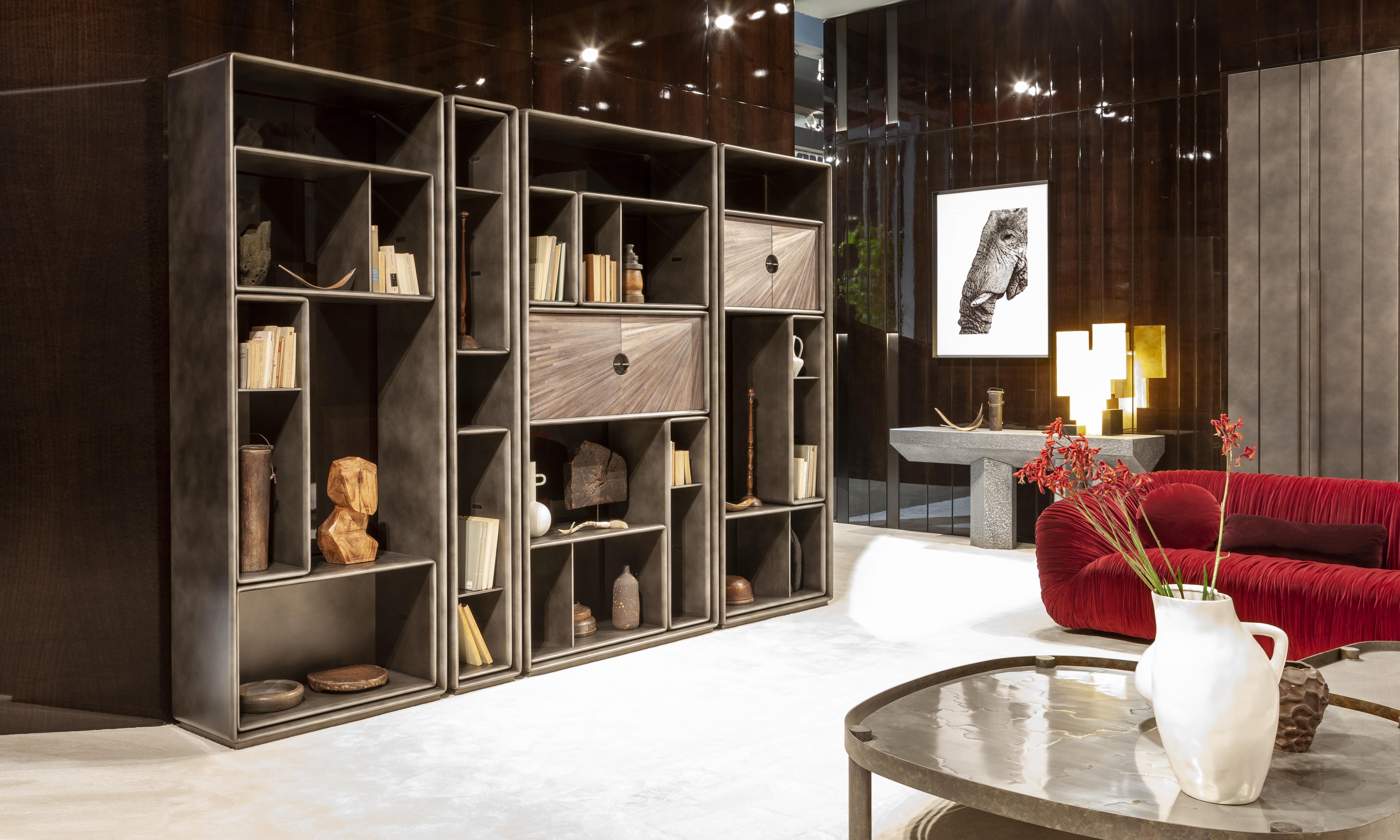 Part of the iconic Talento collection, this bookcase repeats the skilful balance of full and empty spaces, the rounded edges and the particular recessed design handle, giving life to a new style element designed and equipped to elegantly showcase any object.