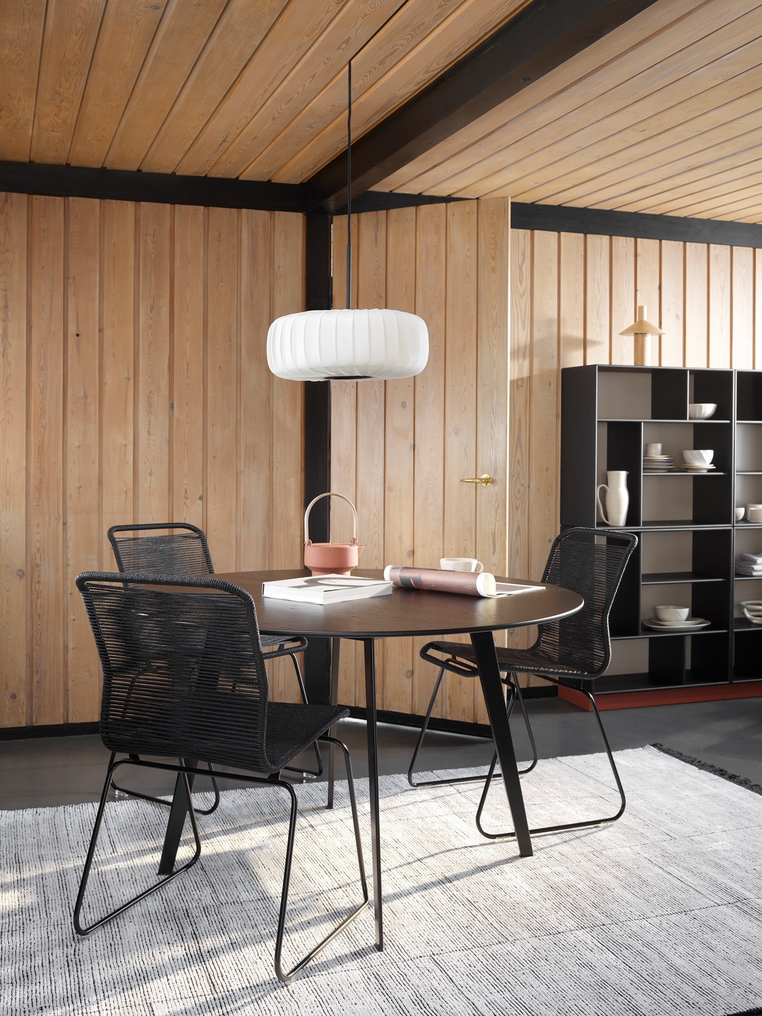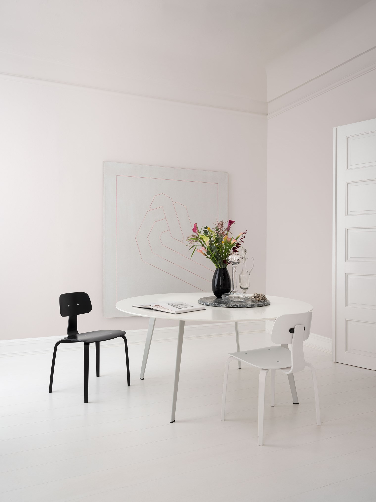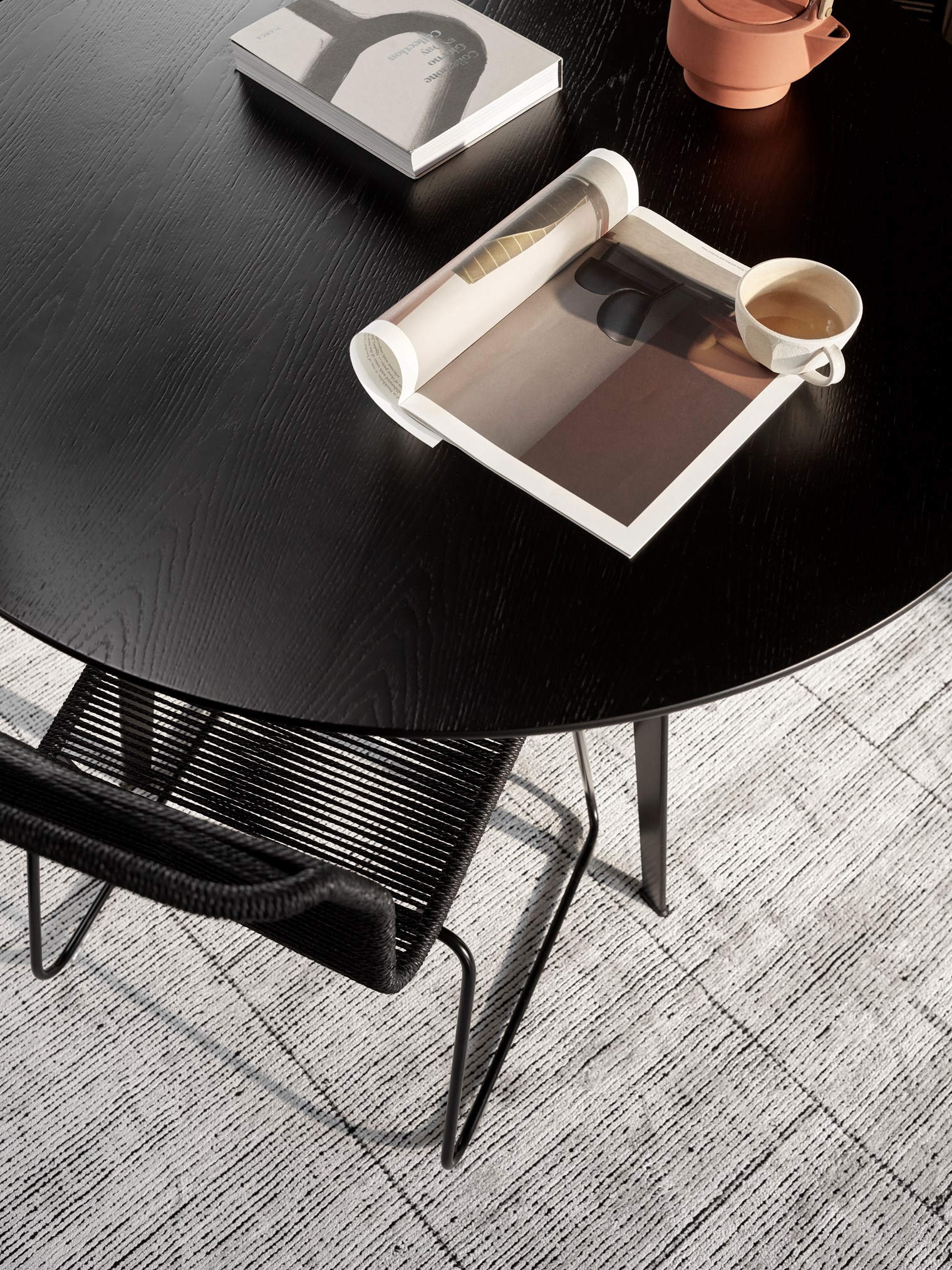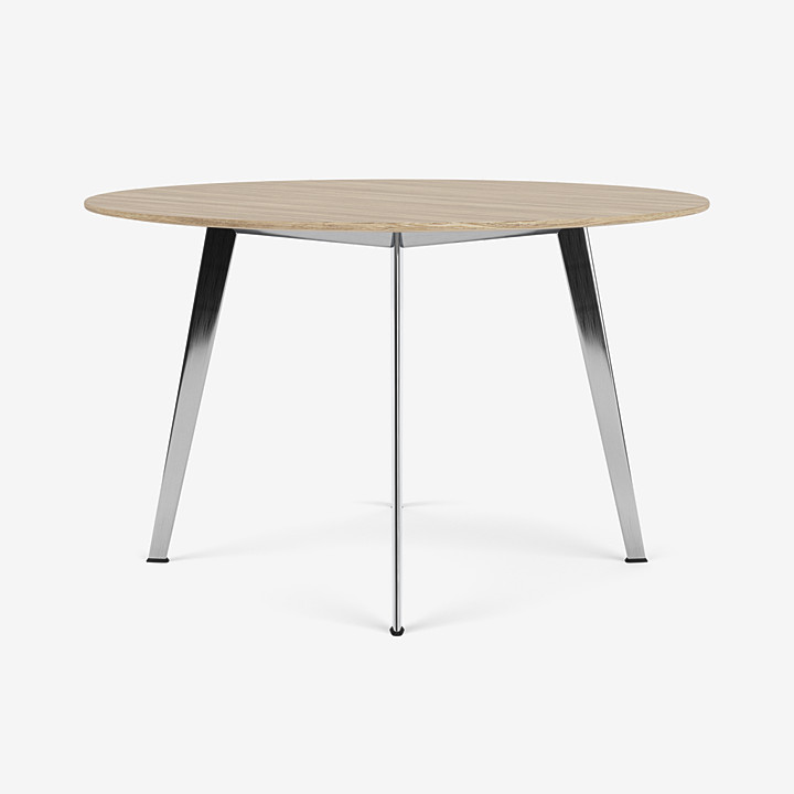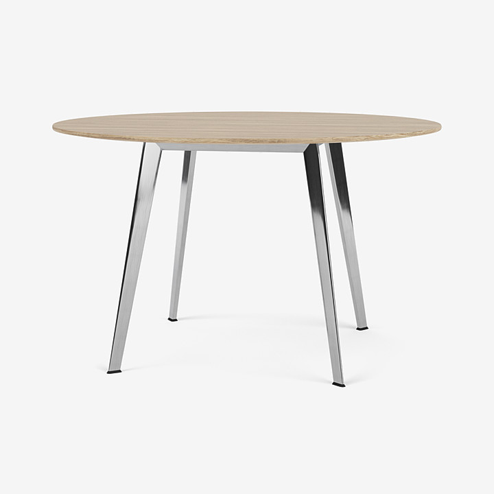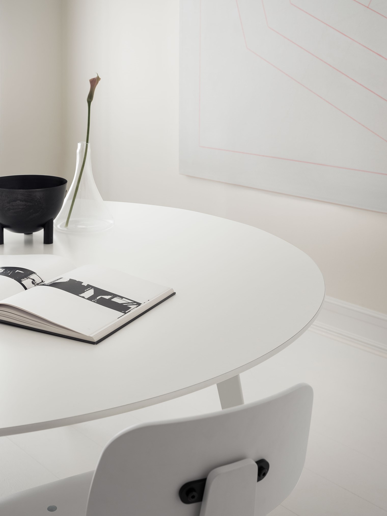 這款現(xiàn)代桌子具有無限的可能性,可以為私人和專業(yè)用途創(chuàng)造時尚簡約的室內設計。圓桌纖薄輕巧的設計使其成為餐廳或專業(yè)會議區(qū)的理想選擇。桌子直徑120厘米,高74厘米。由于桌子的設計注重舒適性和人體工程學,因此框架隱藏在桌面下方,桌腿略微向外傾斜,提供了最大的腿部空間。桌面有八種不同的材料可供選擇:雪絲層壓板、黑色和新北歐顏色的油氈、白橡木、燒橡木和黑橡木以及實心道格拉斯橡木和實心橡木貼面。