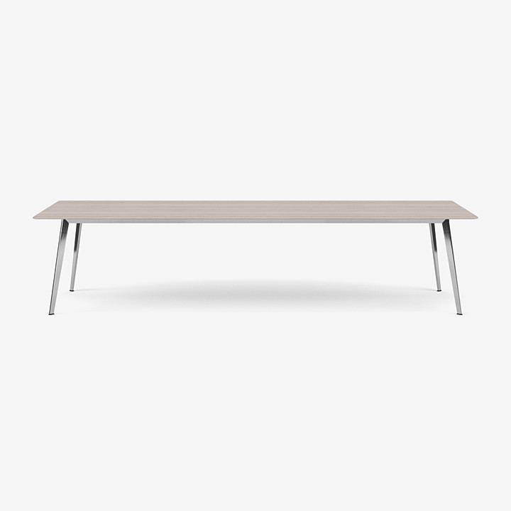 這款 JW 桌子是一款大型矩形桌子,既適合大型餐廳,也適合專業(yè)會議室或會議室。它的尺寸為長 320 厘米、寬 120 厘米、高 74 厘米。桌子輕薄但穩(wěn)定??蚣苤糜谧烂嫦路?,三角形桌腿略微向外傾斜,優(yōu)雅簡約的桌子為腿部提供了最大的空間。該桌子有八種不同材質(zhì)的桌面可供選擇:雪絲層壓板、黑色和新北歐顏色的油氈、白橡木、燒橡木和黑橡木以及實心道格拉斯和實心橡木貼面。